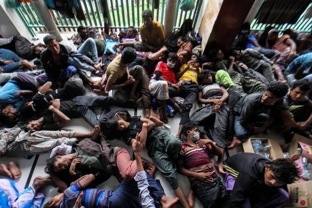 Sebanyak 110 pengungsi Rohingya terdampar di Desa Meunasah Lhok, Kecamatan Muara Batu, Kabupaten Aceh Utara, Aceh (15/11). Dari jumlah tersebut, 65 orang merupakan laki-laki, 27 perempuan, dan 18 anak-anak. Kepala Bagian Humas Pemkab Aceh Utara, Hamdani, mengatakan bahwa ratusan warga Rohingya itu pertama kali ditemukan oleh nelayan sekitar Muara Batu. Nelayan yang pulang melaut melihat satu kapal yang diisi ratusan penumpang, berada tidak jauh dari bibir pantai. Nelayan tersebut langsung melaporkan ke aparat desa.