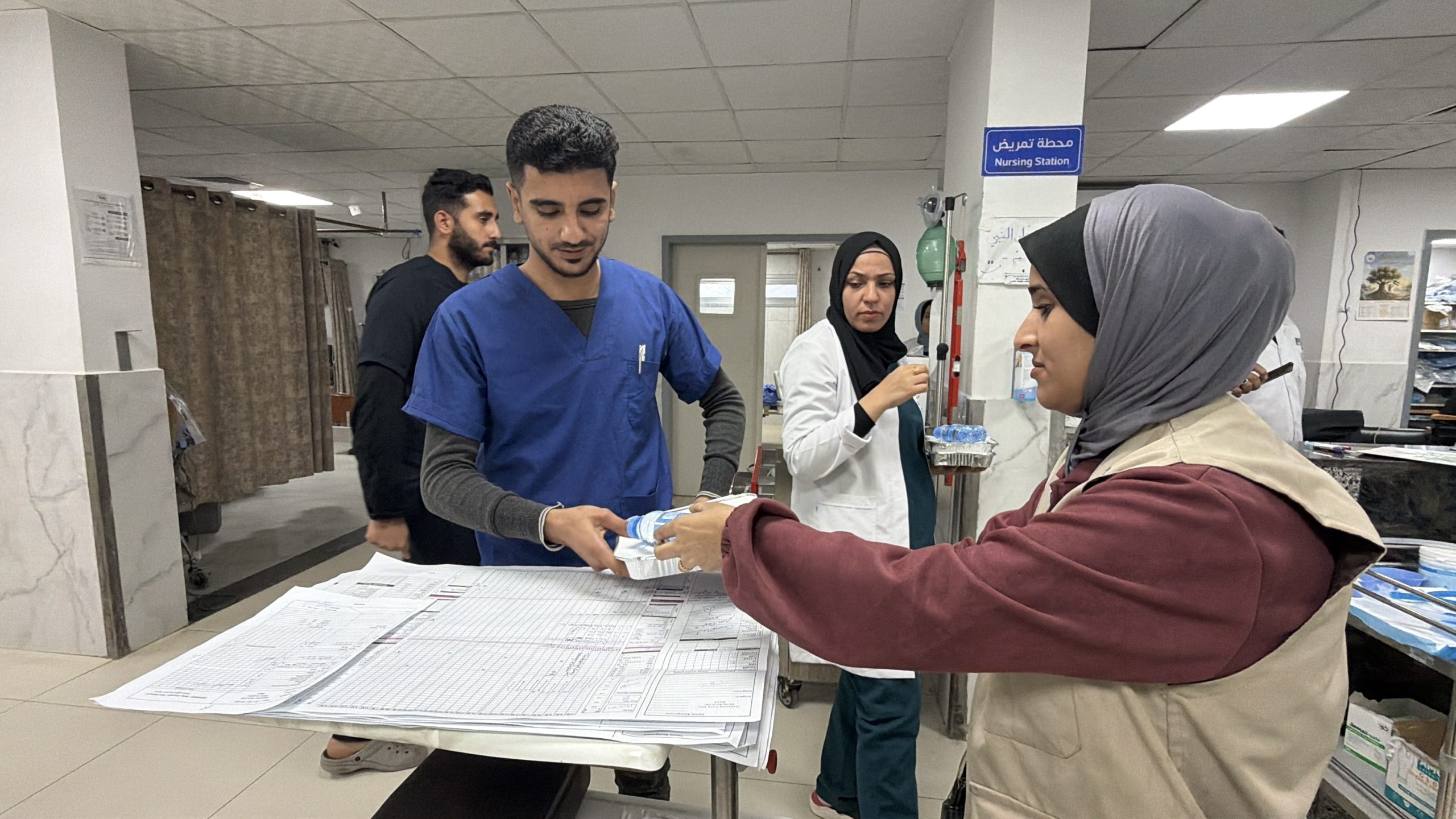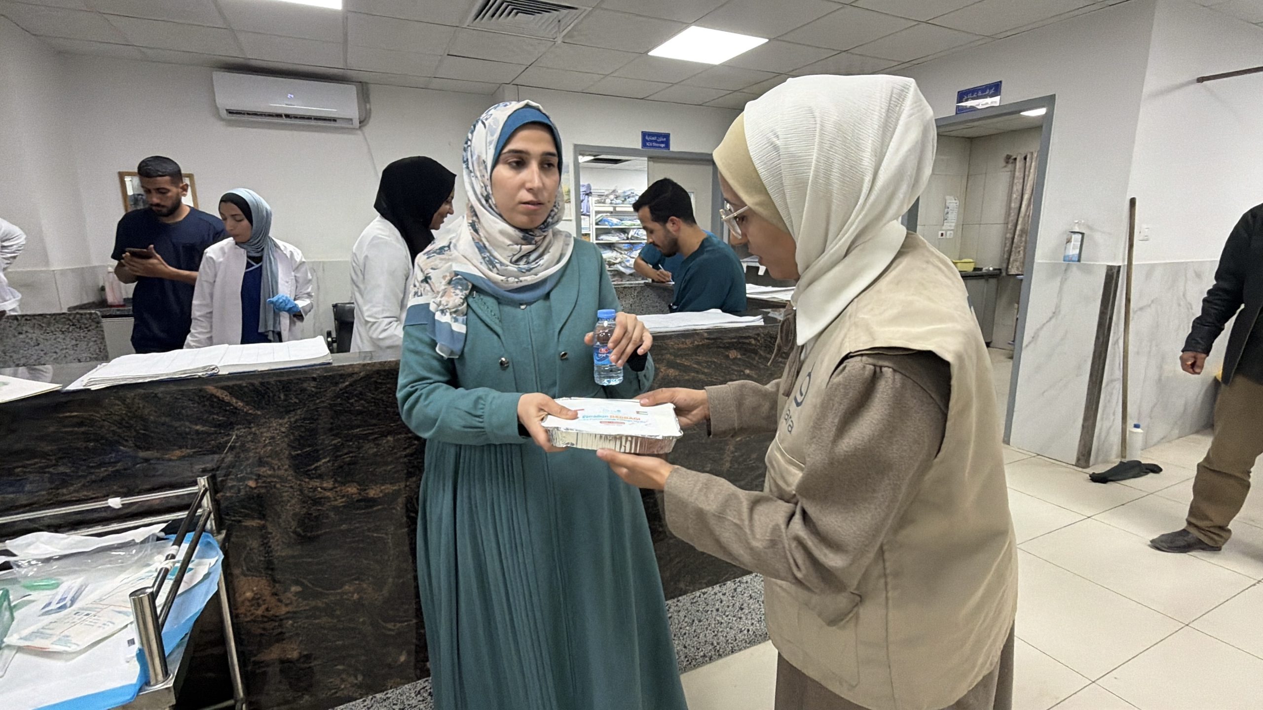 Bagi tenaga kesehatan, berpuasa sambil bekerja menjadi tantangan tersendiri di bulan Ramadan. Dengan kondisi perut kosong berhari-hari, mereka harus membantu para korban yang terus-menerus dibawa ke rumah sakit. Meski begitu, mereka tetap mengerjakan tugas kemanusiaan mereka dengan sebaik-baiknya.
