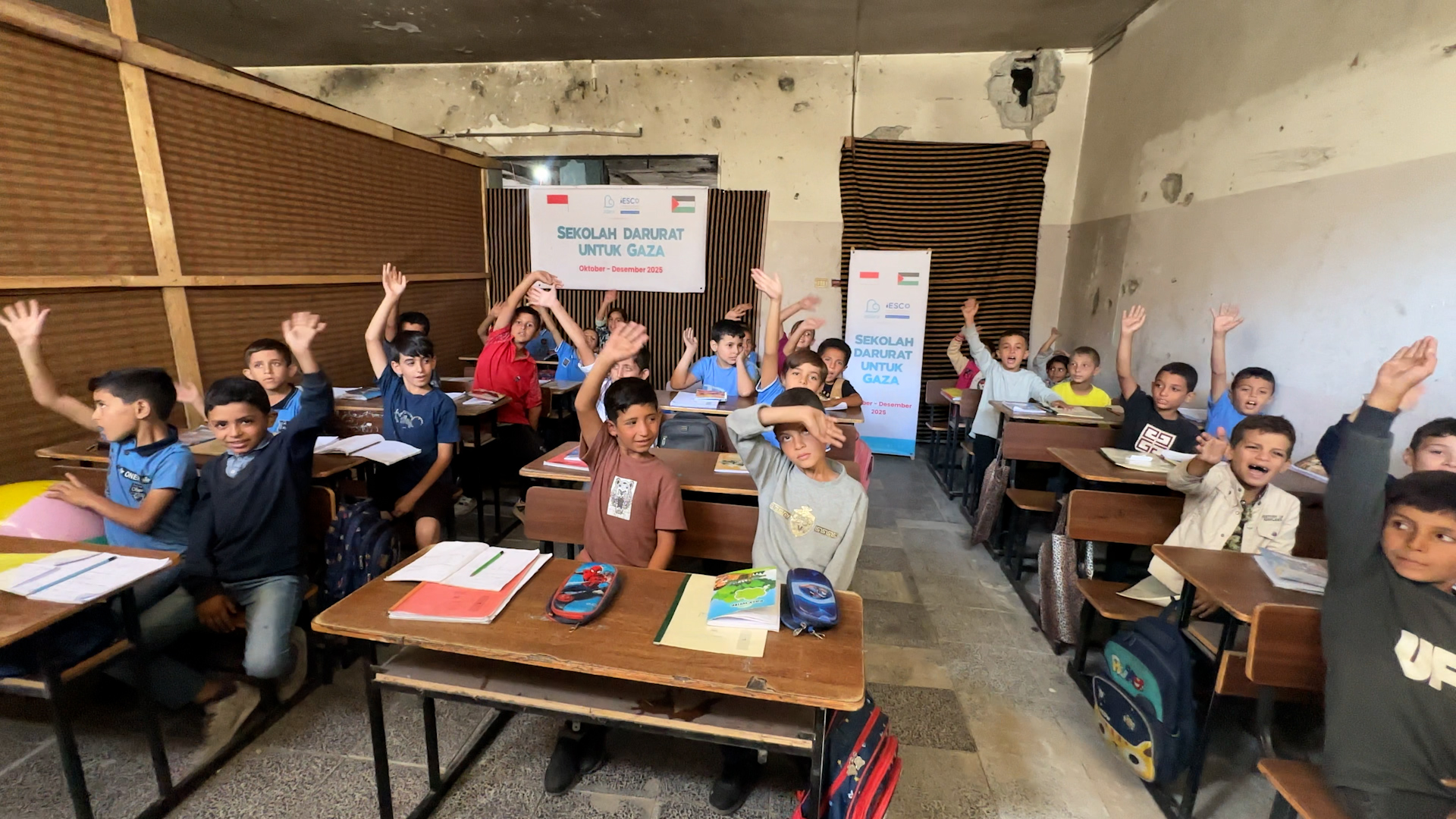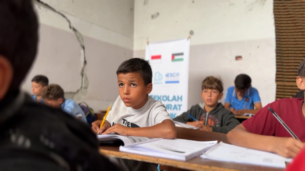 Akan tetapi, kini ratusan anak Gaza bisa kembali menuntut ilmu di sekolah seperti dahulu, dengan ruang-ruang kelas yang diisi dengan papan tulis, meja dan kursi, bukan dengan pakaian dan barang-barang yang mereka bawa mengungsi. Bantuan pendidikan ini terselenggara berkat donasi dari Sahabat Adara, yang mewujudkan berdirinya Sekolah Darurat di Al-Rimal, Kota Gaza, pada 2 Oktober 2025. Sebanyak 250 anak bisa kembali bersekolah dengan bantuan pendidikan ini, mereka difasilitasi pelajaran bahasa Arab, matematika, IPA, bahasa Inggris, juga sesi trauma healing dan games.