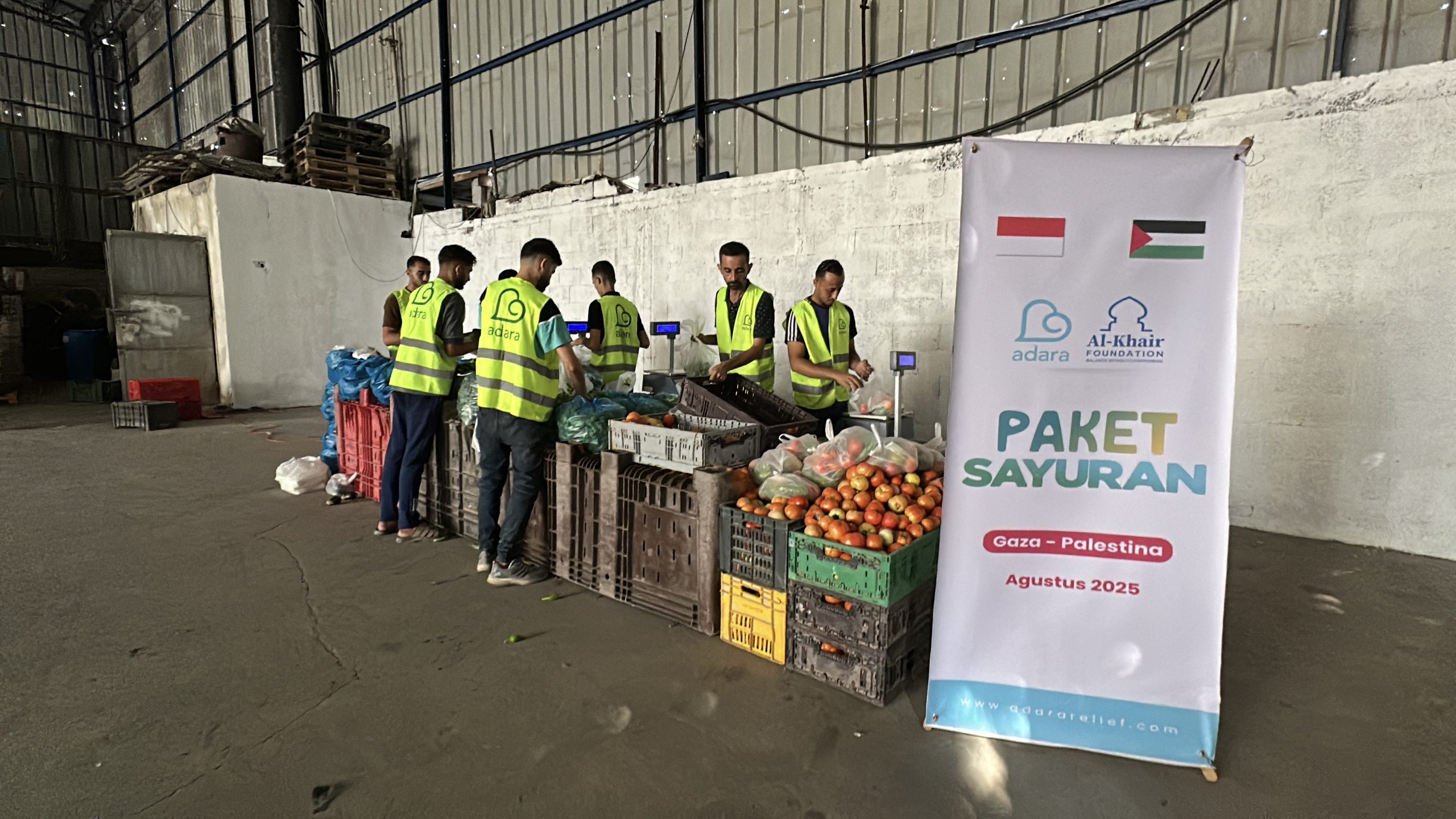 Untuk membantu memenuhi kebutuhan nutrisi warga Gaza, pada 31 Juli 2025, Adara Relief International menyalurkan bantuan paket sayuran yang memberi manfaat bagi 80 keluarga di Kamp Al Wahidi di Kota Gaza. Paket-paket sayuran ini terdiri dari beberapa macam sayuran yang dapat memenuhi kebutuhan sayuran satu keluarga selama 10 hari.