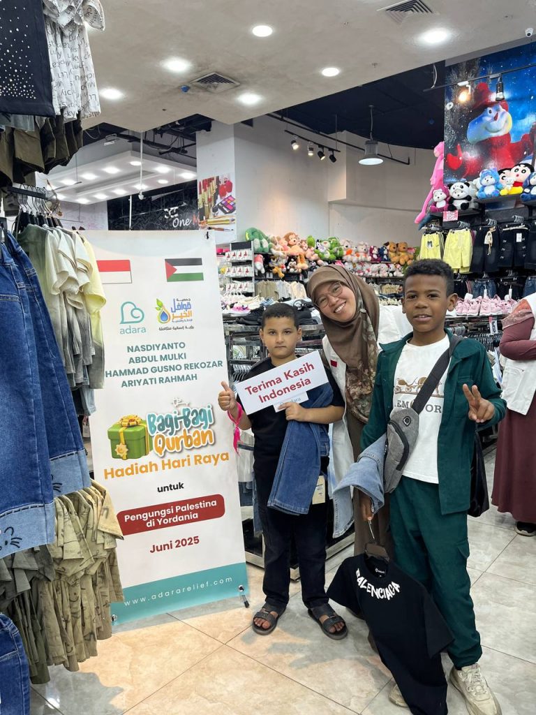 Menyadari bahwa pengungsi Palestina di Yordania hidup penuh kesulitan selama bertahun-tahun, maka pada momen Idul Adha tahun ini, Adara Relief International menunjukkan kepedulian kepada para pengungsi dengan membagikan hadiah hari raya. Pada tanggal 4 dan 5 Juni 2025, sebanyak 350 anak, menerima hadiah dari raya dari Adara berupa pakaian dan sejumlah kebutuhan dasar lainnya.