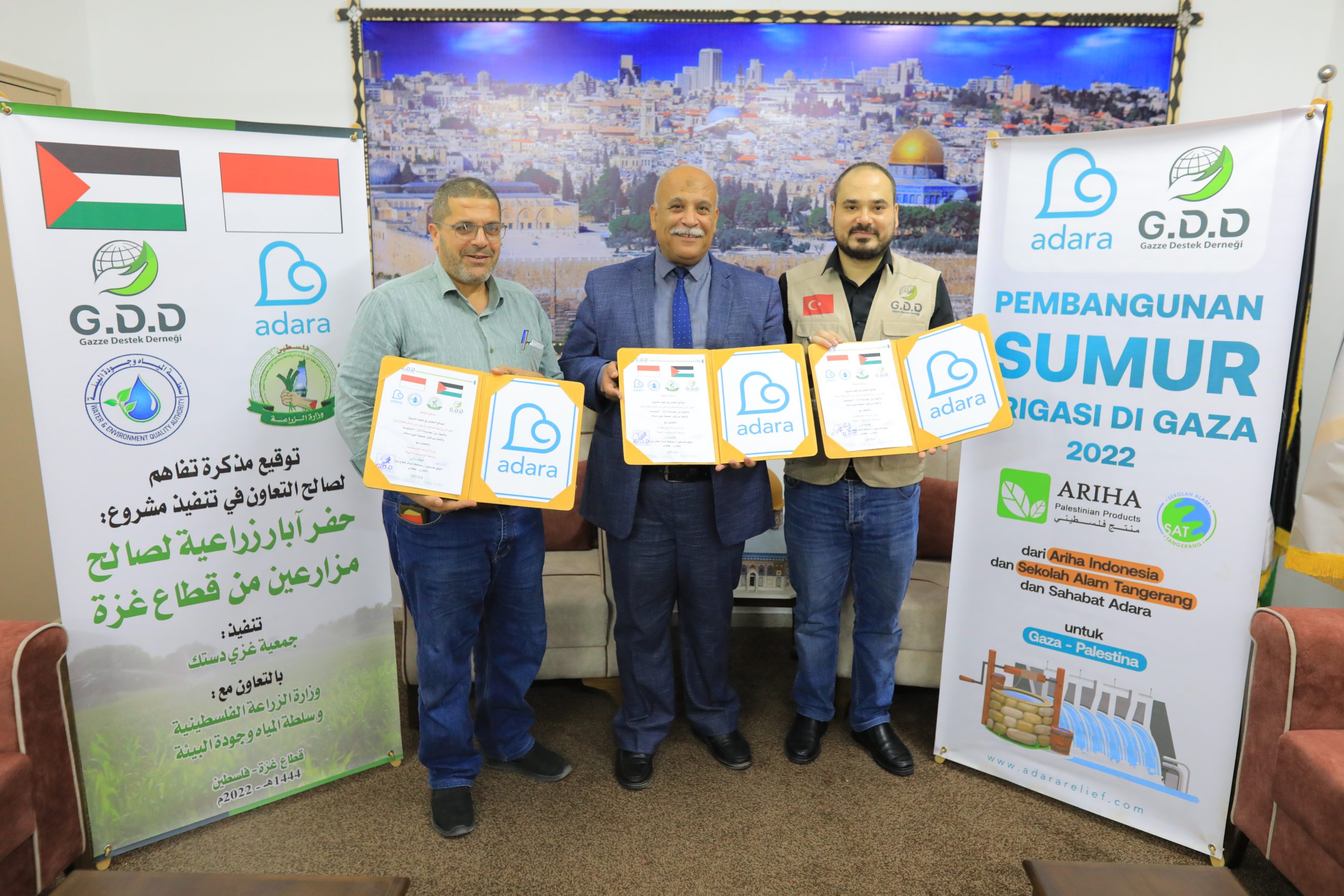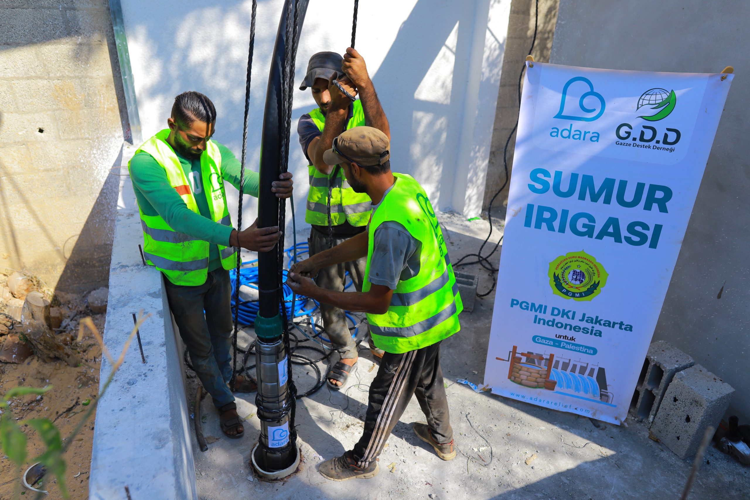 Adara Relief International bersama Persatuan Guru Madrasah Ibtidaiyah (PGMI) telah membangun sumur untuk pengairan lahan pertanian di `Ulwan, Jabalia al-Balad, Gaza Utara pada November 2022. .