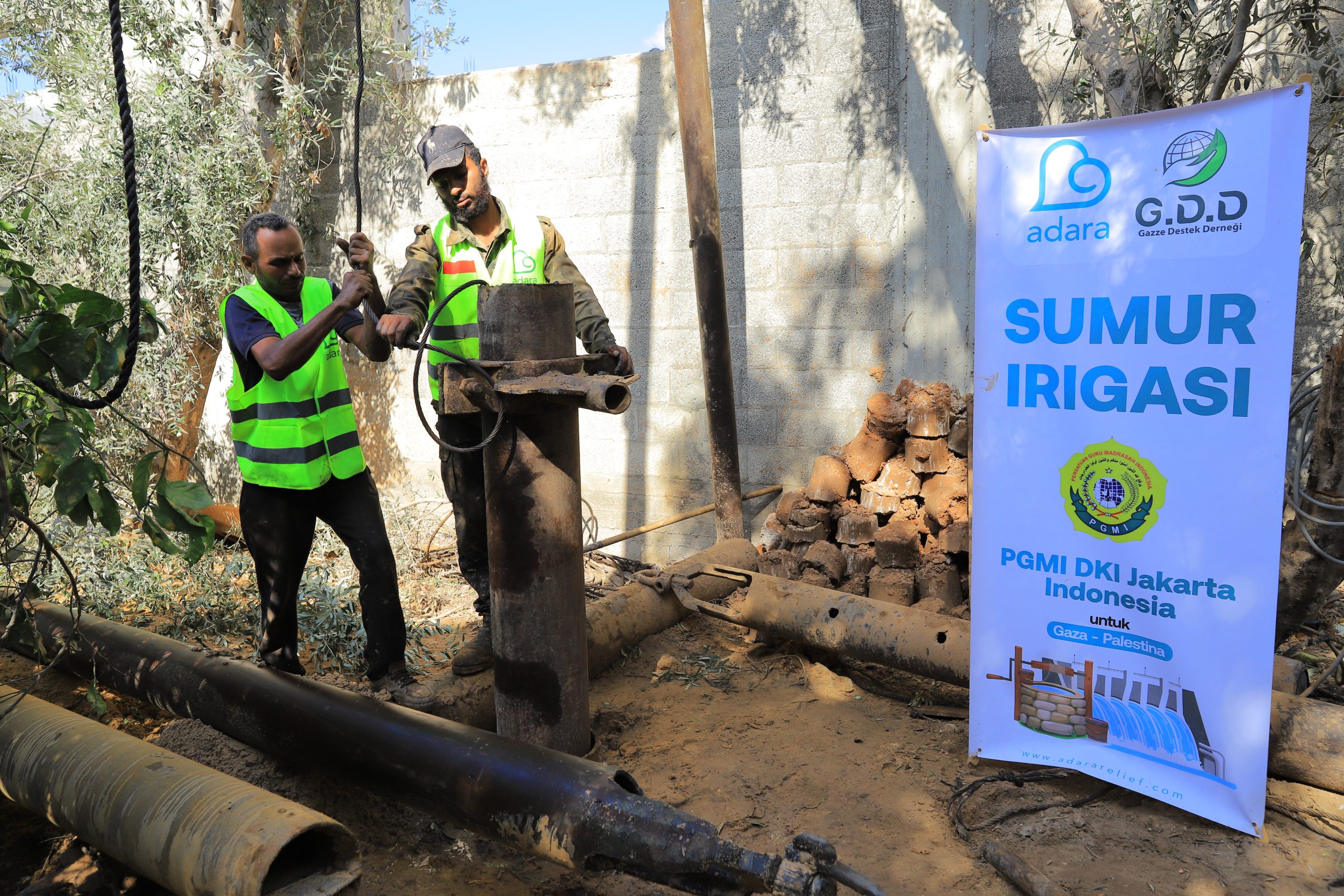 Adara Relief International bersama Persatuan Guru Madrasah Ibtidaiyah (PGMI) telah membangun sumur untuk pengairan lahan pertanian di `Ulwan, Jabalia al-Balad, Gaza Utara pada November 2022. .