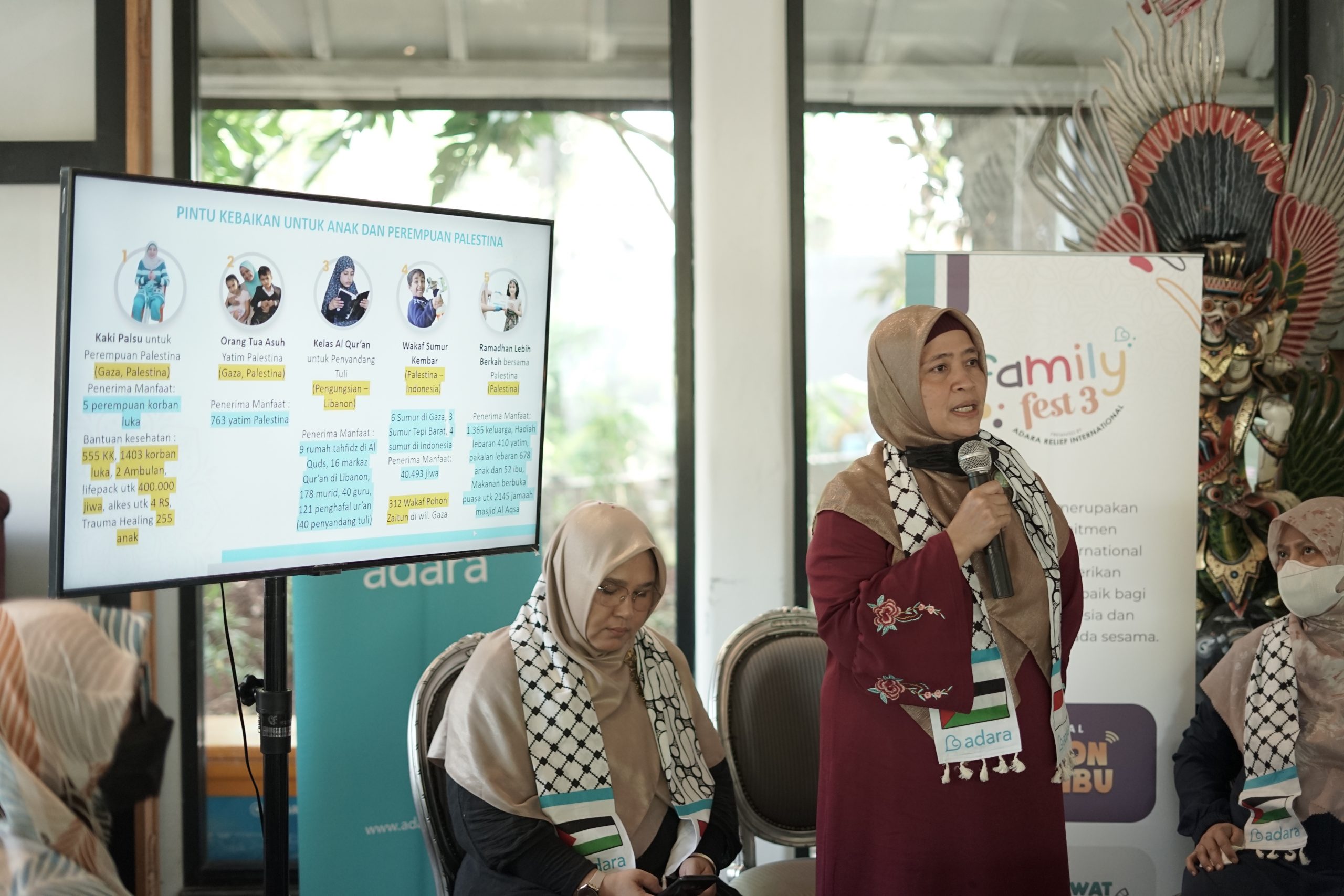 ![Konferensi pers Palestine Festival yang diselenggarakan di Gudskul, Jagakarsa, pada Ahad [30/11] sebagai rangkaian menuju event kemanusiaan akhir tahun 2025. Acara ini memperkenalkan teater bertema keteguhan rakyat Gaza dalam menghadapi genosida. Konferensi pers turut dihadiri para pemain teater: David Chalik, Bella Fawzi, Robert Chaniago, dan Cholidi Asadil Alam.](https://adararelief.com/wp-content/uploads/2025/12/DSC00773-120x86.jpg)
