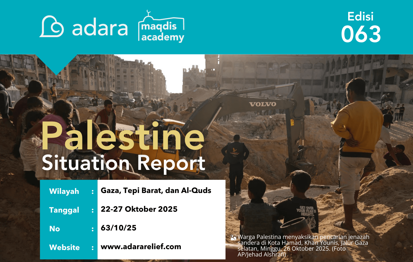 Laporan ini diterbitkan setiap pekan sebagai bagian dari komitmen Adara Relief dalam menyediakan informasi yang terpercaya dan tepat waktu, untuk mendukung respons kemanusiaan yang efektif, terkoordinasi, dan berbasis pada kebutuhan nyata masyarakat Palestina.