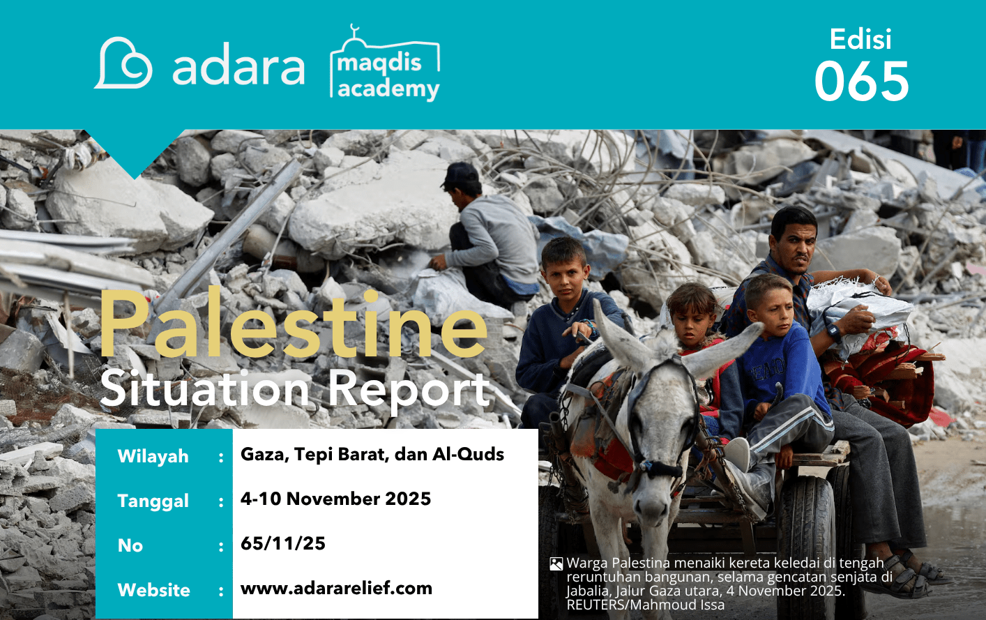 Laporan ini diterbitkan setiap pekan sebagai bagian dari komitmen Adara Relief dalam menyediakan informasi yang terpercaya dan tepat waktu, untuk mendukung respons kemanusiaan yang efektif, terkoordinasi, dan berbasis pada kebutuhan nyata masyarakat Palestina.