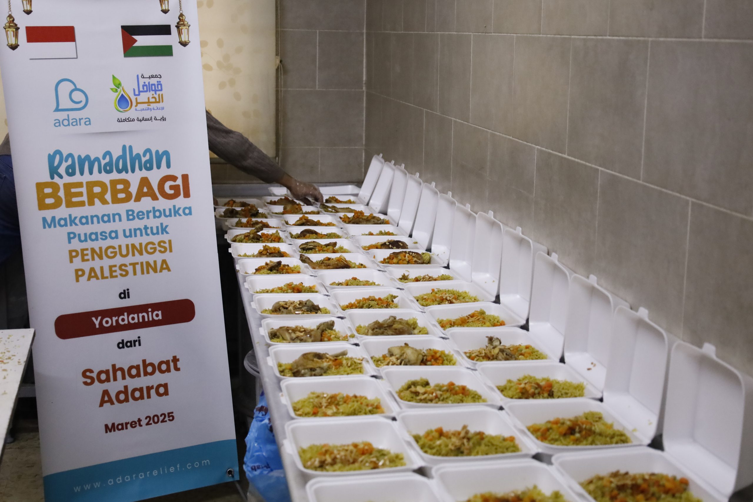 Pada hari ke-22 Ramadhan yaitu tanggal 22 Maret, Adara mengirimkan bantuan makanan buka puasa untuk 250 keluarga Palestina yang berada di kamp Al Mahatta, Yordania. Paket makanan berbuka puasa meliputi nasi, ayam, yogurt, jus, kurma, air mineral, dan roti yang dapat dinikmati oleh 1.250 orang pengungsi Palestina yang ada di kamp tersebut.