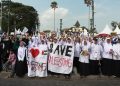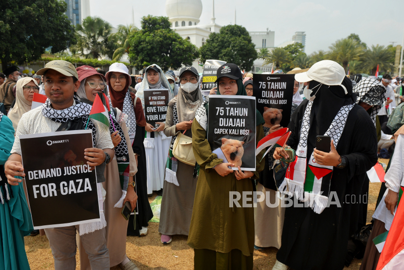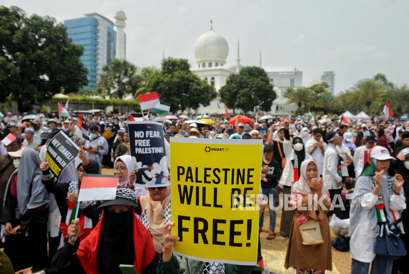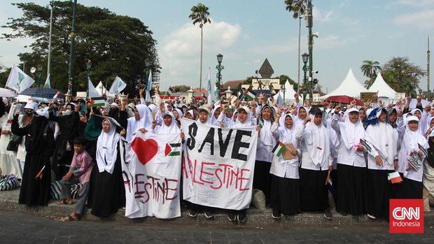 Puluhan ribu orang turun ke jalan untuk mendukung warga Palestina di kota-kota di seluruh dunia yang menyerukan diakhirinya penjajahan Israel di Gaza, termasuk di sejumlah wilayah Indonesia.