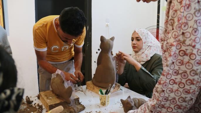 Sebuah studio seni di Kota Khan Yunis, Jalur Gaza selatan, ramai dengan anak-anak yang membuat kerajinan dari tanah liat. Mereka dilatih memahat secara profesional oleh seniman Palestina. Kegiatan ini diharapkan dapat mengalihkan kenyataan sulit mereka dengan menerjemahkannya ke dalam karya seni yang nyata.