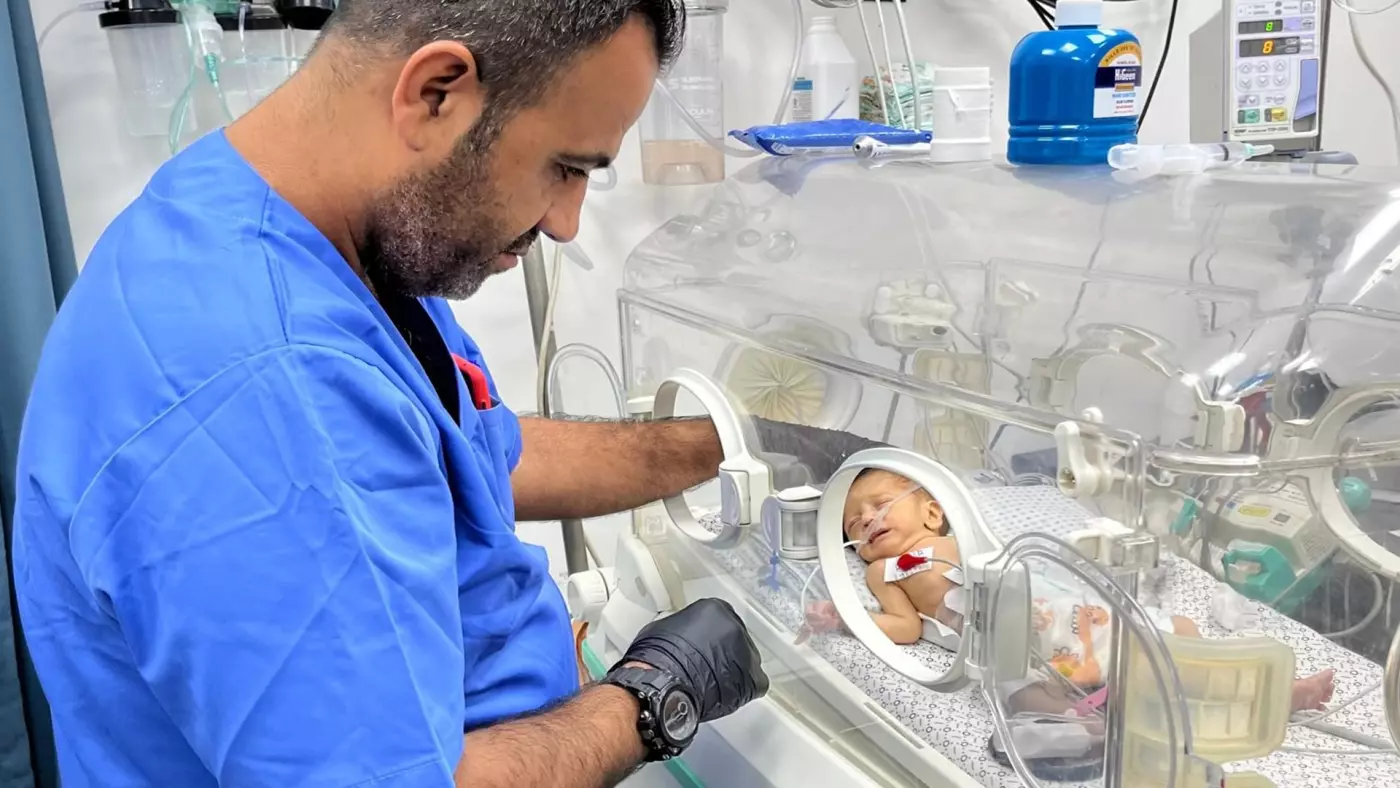 Bayi baru lahir yang dievakuasi dari unit perawatan intensif neonatal di Rumah Sakit Kamal Adwan di Gaza utara. [middleeasteye]