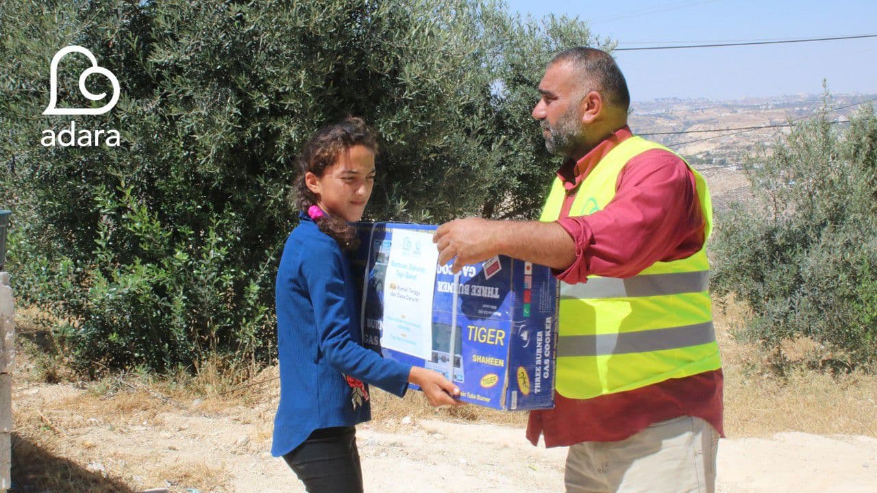 Untuk menguatkan penduduk Palestina, Adara menyalurkan program bantuan darurat berupa dana tunai dan peralatan rumah tangga kepada 50 keluarga yang tinggal di kota Yatta dan Dura, Al-Khalil (Hebron)-Tepi Barat.