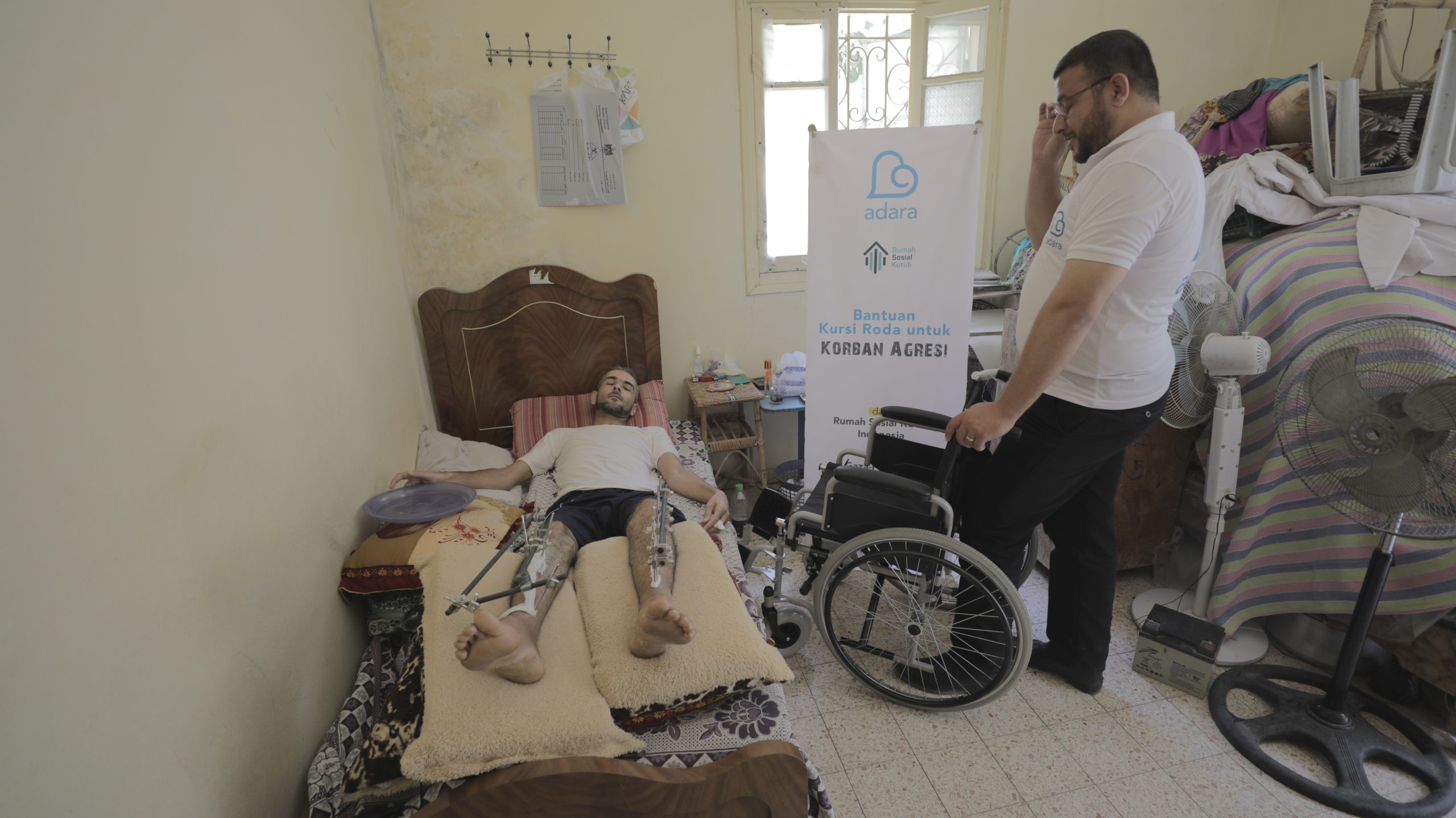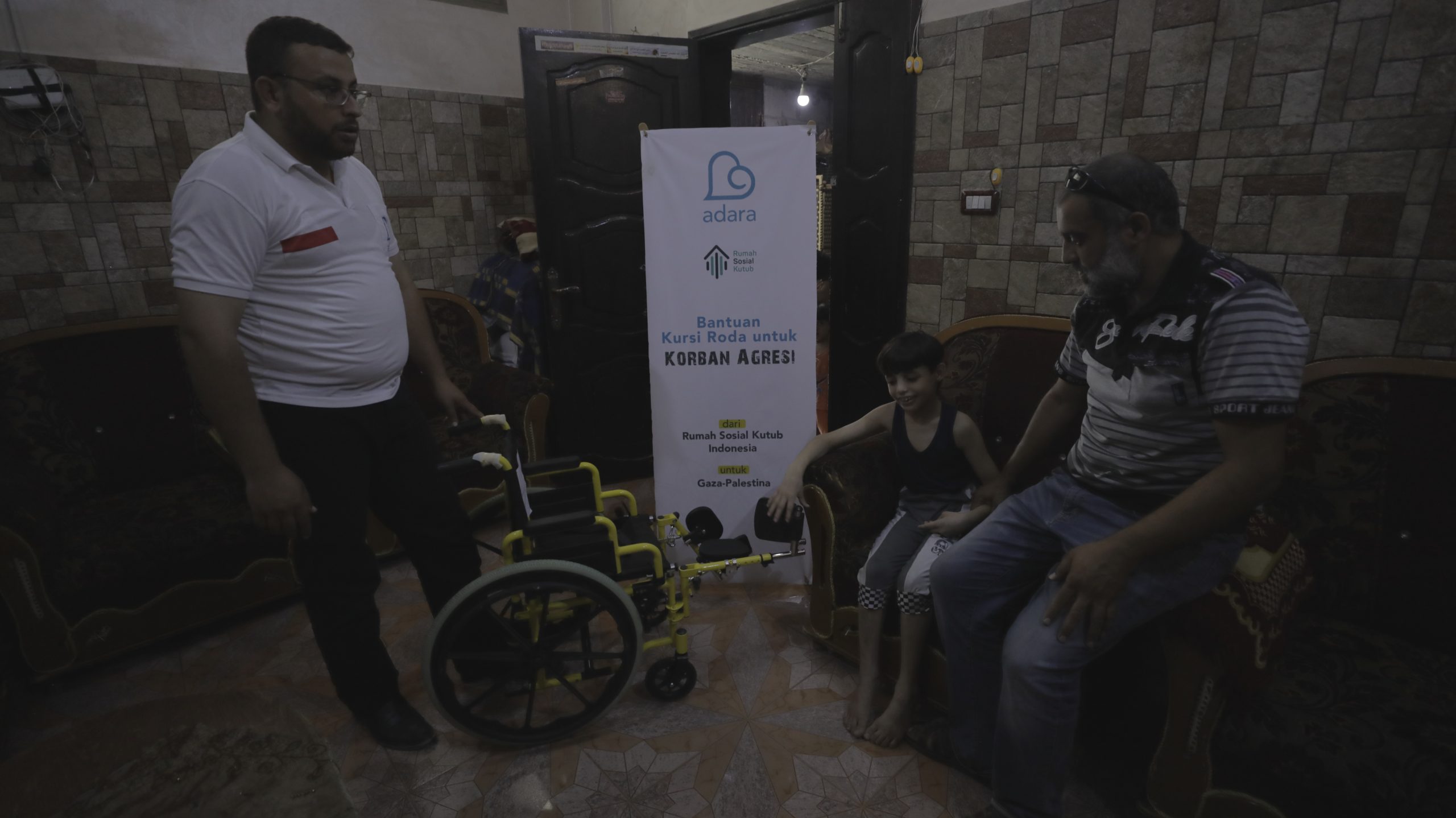 Adara Relief International bersama dengan Rumah Sosial Kutub (RSIK) memberikan bantuan kursi roda kepada 45 orang penerima manfaat pada 18 Juli 2021 bagi korban agresi Gaza 2014.