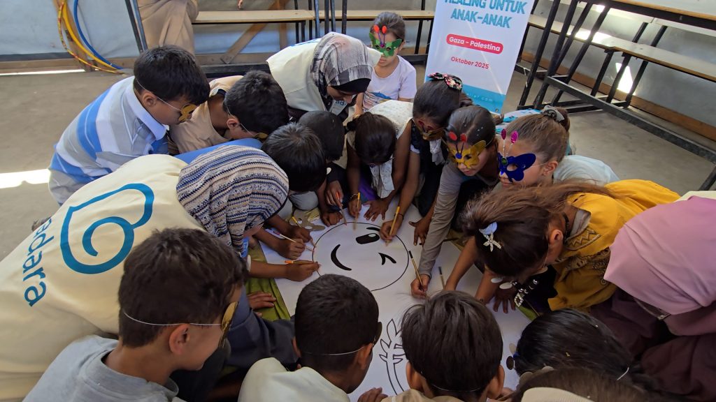 JAKARTA-Selain cedera fisik, gangguan psikologis juga merupakan salah satu masalah yang mempengaruhi perkembangan anak-anak Gaza. Jika cedera fisik dapat dilihat oleh mata dan dirasakan secara sadar oleh tubuh, gangguan psikologis tidaklah sama. Gangguan psikologis seringkali tidak terlihat kasat mata, bahkan ada individu yang tidak menyadari bahwa mereka menderita gangguan psikologis, dan dalam beberapa kondisi, gangguan psikologis bahkan juga dapat mengganggu kesehatan fisik. Oleh sebab itu, gangguan psikologis terutama pada anak-anak merupakan masalah serius di Gaza. Sebagai respon atas permasalahan tersebut, pada 18 Oktober 2025, Sahabat Adara bersama Adara Relief International memberikan bantuan trauma healing untuk 250 anak di Gaza utara.