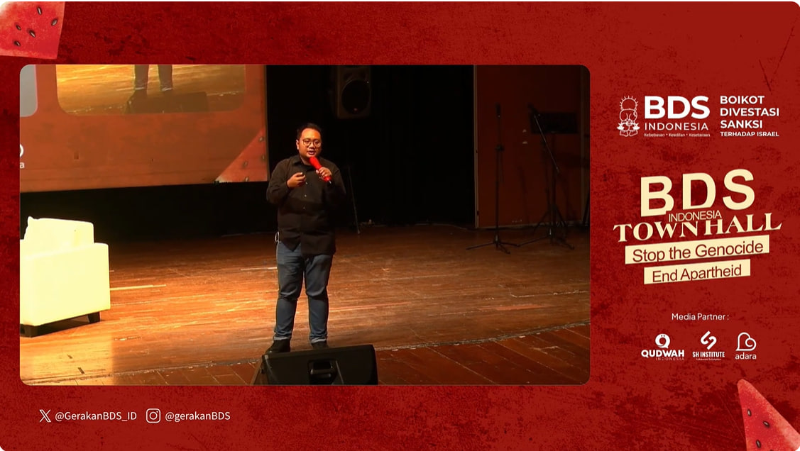 “Kita harus mulai melakukan dari diri sendiri, mengawali boikot produk yang diketahui terlibat langsung dalam pelanggaran berat terhadap rakyat Palestina. Lalu, paling penting juga kita hanya bisa efektif kalau kolektif kita harus bangun solidaritas tidak hanya individu tetapi juga insitutsi hingga pemerintah,” ujar Omar Barghouti Co-Founder BDS Movement saat hadir secara virtual dalam acara BDS Indonesia Town Hall.