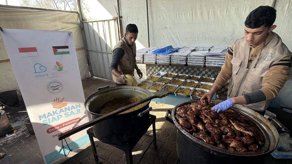 Pada tahun 2025, kasus kelaparan di kalangan anak-anak di bawah lima tahun melonjak dari 2.754 pada bulan Januari menjadi 14.383 pada bulan Agustus. Tak ingin jumlah ini terus bertambah, pada 22 Desember 2025, Sahabat Adara bersama Adara Relief International menyalurkan bantuan makanan siap saji ke Jalur Gaza. Bantuan makanan siap saji ini telah memberi manfaat bagi 1.818 orang di Khan Younis.