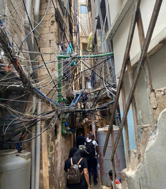 Kabel listrik di kamp pengungsi, Kamp Burj Barajneh, Agustus 2021