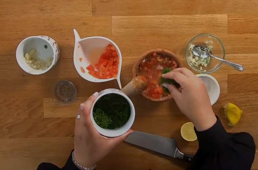 Untuk melengkapi hidangan sederhana ini, pastikan untuk menggunakan bahan-bahan segar yang tersedia sehingga cita rasanya bersinar. Agak sulit untuk menemukan biji dill, tetapi itu membuat hidangan ini semakin sempurna, terutama jika masih segar. Biji dill adalah bahan Gaza yang sangat populer dan memberikan cita rasa khas pada masakan daerah tersebut. Bahan inilah yang membedakannya dari hidangan Palestina lainnya. Saat menggilingnya di lesung dan alu, yang terbaik adalah menggunakan gerakan melingkar. Ini membuat biji lebih halus dan melepaskan rasa.