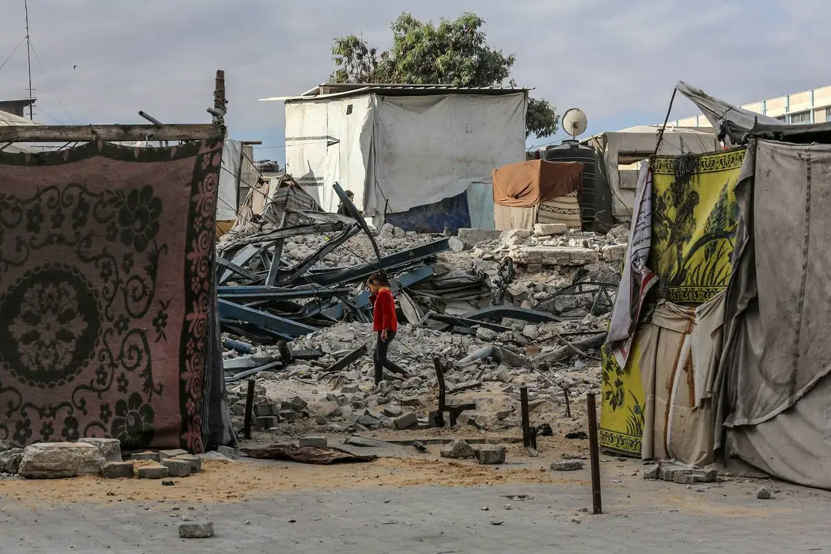 Moein Abu Odeh memanjat tumpukan puing di Gaza selatan, mencari pakaian, sepatu, atau barang lain yang dapat dijualnya demi mendapatkan uang tunai, setelah 13 bulan genosida Israel melanda Gaza.