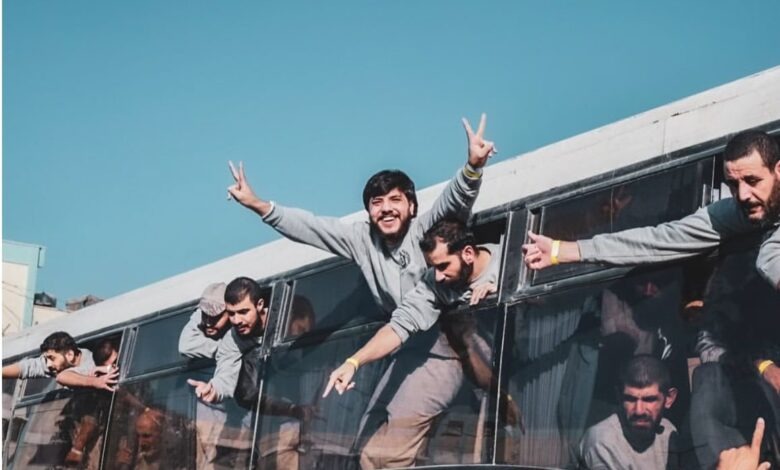 Bus-bus yang membawa para tawanan melintasi perbatasan Karem Abu Salem (Kerem Shalom) disambut dengan sorak-sorai dan nyanyian. Banyak di antara mereka telah menghabiskan bertahun-tahun, bahkan puluhan tahun, di penjara Israel sebelum segera dibawa ke Rumah Sakit Nasser untuk menjalani pemeriksaan medis.