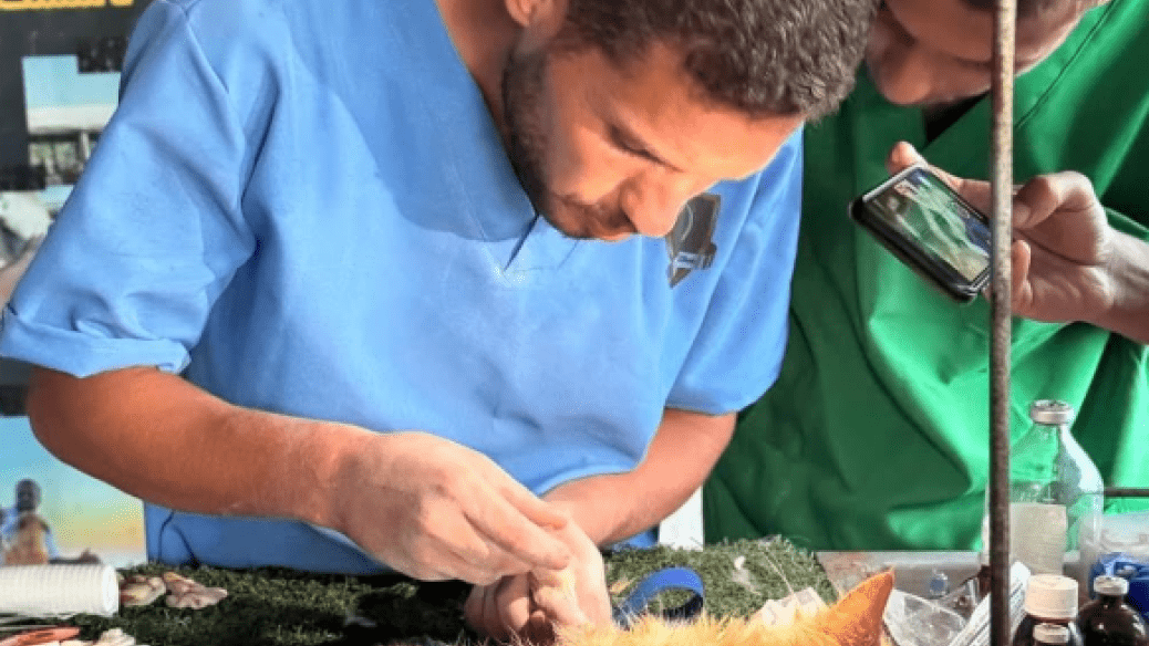 “Dr. Mu’ath adalah satu-satunya dokter hewan yang mampu melakukan operasi di Gaza utara. Ia bekerja tanpa henti bersama Sulala Animal Rescue, menyelamatkan nyawa puluhan hewan di tengah kehancuran.”