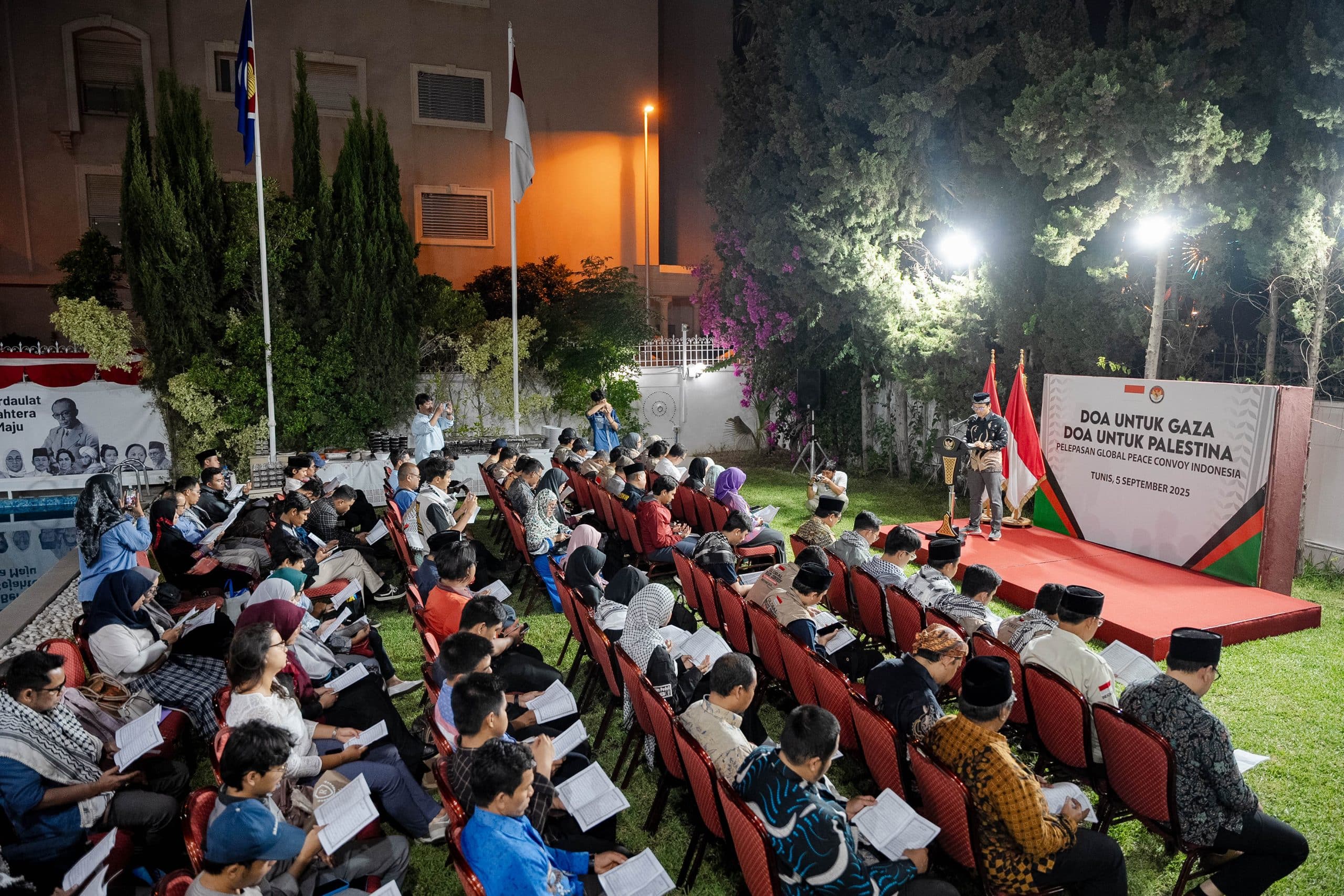 Tunis — Delegasi Indonesia untuk Global Sumud Flotilla memenuhi undangan Doa Bersama dan Pelepasan Delegasi Indonesia Global Peace Convoy (5/9). Agenda ini diinisiasi oleh Zuhairi Misrawi (Duta Besar RI untuk Tunisia), dan bertempat di Wisma Duta Besar Republik Indonesia untuk Tunisia.