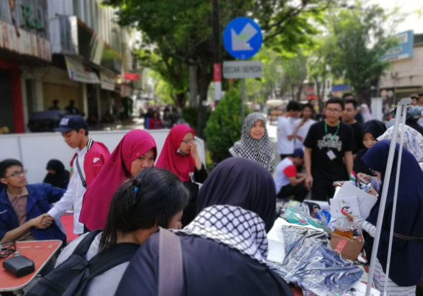 Adara Relief – Surakarta. Mahasiswa Universitas Sebelas Maret (UNS) yang tergabung dalam Jamaah Nurul Huda Unit Kegiatan Mahasiswa Islam UNS mengadakan aksi solidaritas untuk Palestina yang bertema Palestine Solidarity Run : Peace, Love, Humanity (02/12). Kegiatan ini berlangsung ketika Car Free Day Solo. Peserta berlari dari depan Kedai “Richeese Factory” hingga pertigaan Bank HSBC yang berjarak sejauh 2,1 KM.