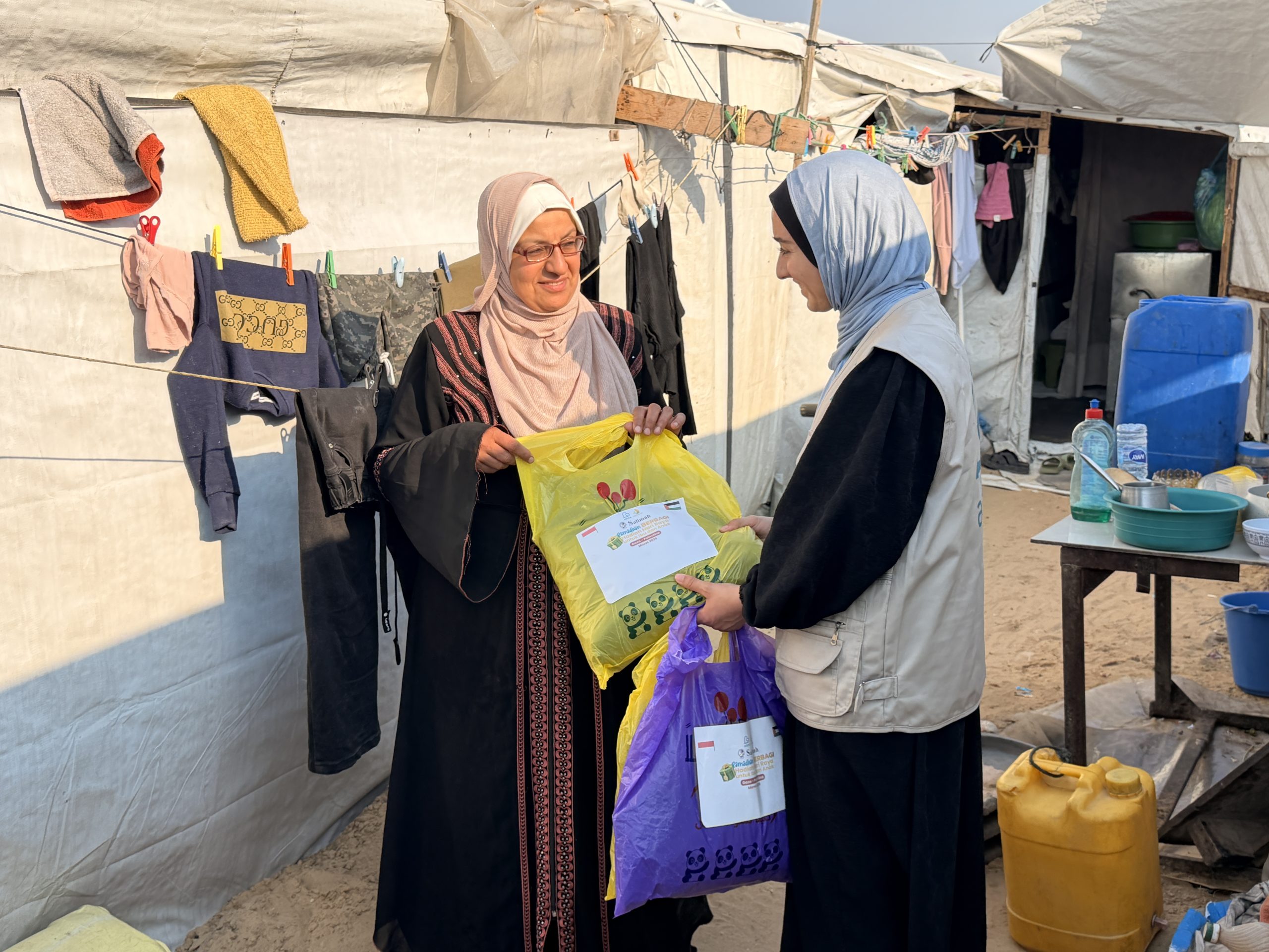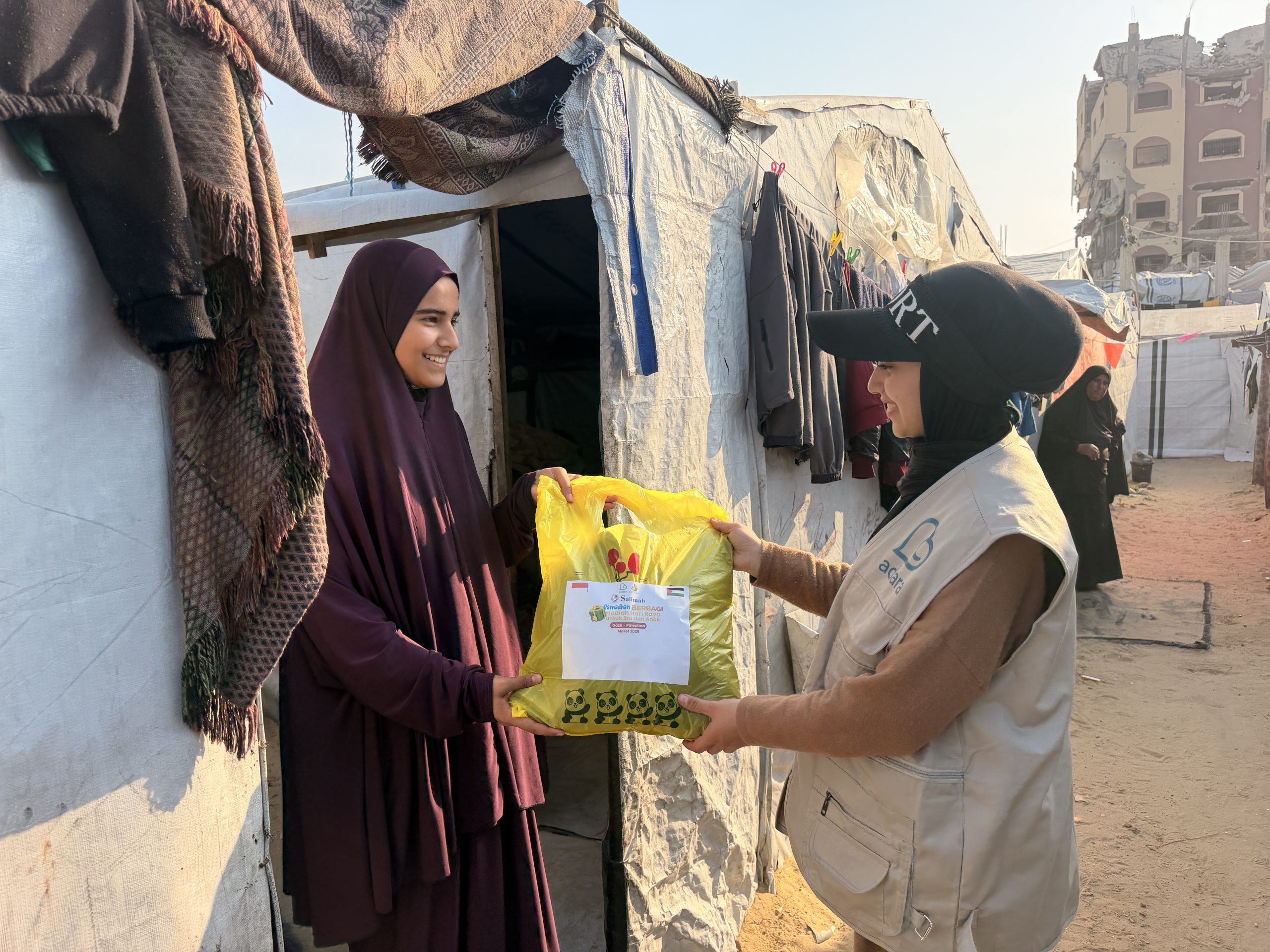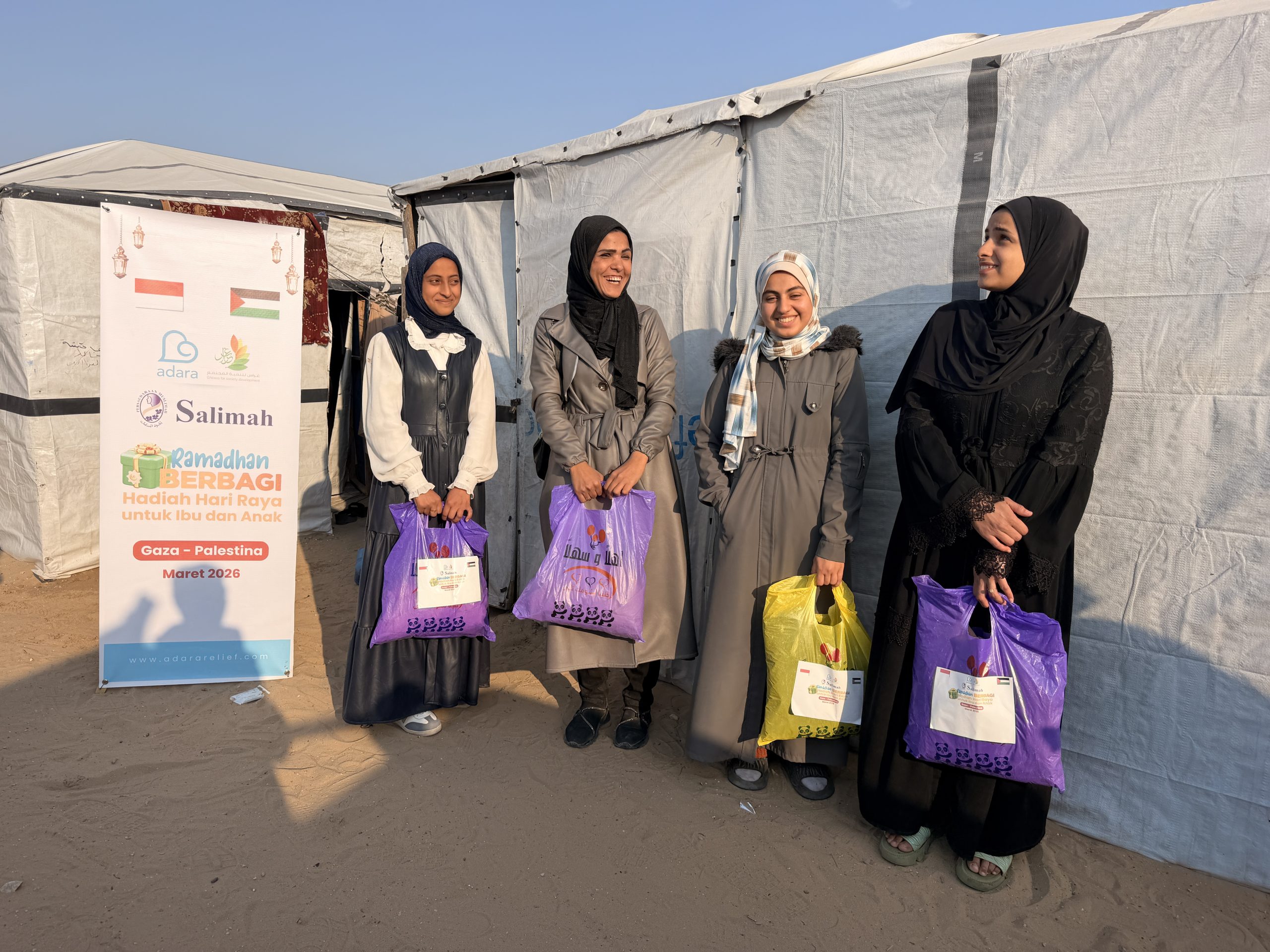 Kehilangan orang-orang tercinta dan terpaksa mengungsi terus menerus telah menjadi tekanan bagi mental perempuan dan anak-anak di Jalur Gaza. Oleh sebab itu, menjelang Idul Fitri, Sahabat Adara mengirimkan hadiah Hari Raya untuk menghibur mereka. Pada 11 dan 14 Maret 2026, hadiah Hari Raya untuk perempuan dan anak-anak telah tiba di Gaza. Hadiah ini berupa pakaian baru untuk mereka kenakan saat Idul Fitri. Hadiah Hari Raya yang Sahabat Adara kirimkan telah memberi manfaat bagi 68 ibu dan 70 anak di Khan Younis.