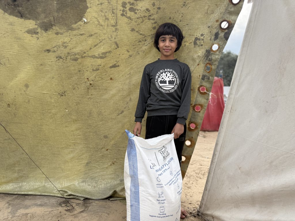 Senyum bahagia anak-anak Gaza di saat menerima sekarung gandum