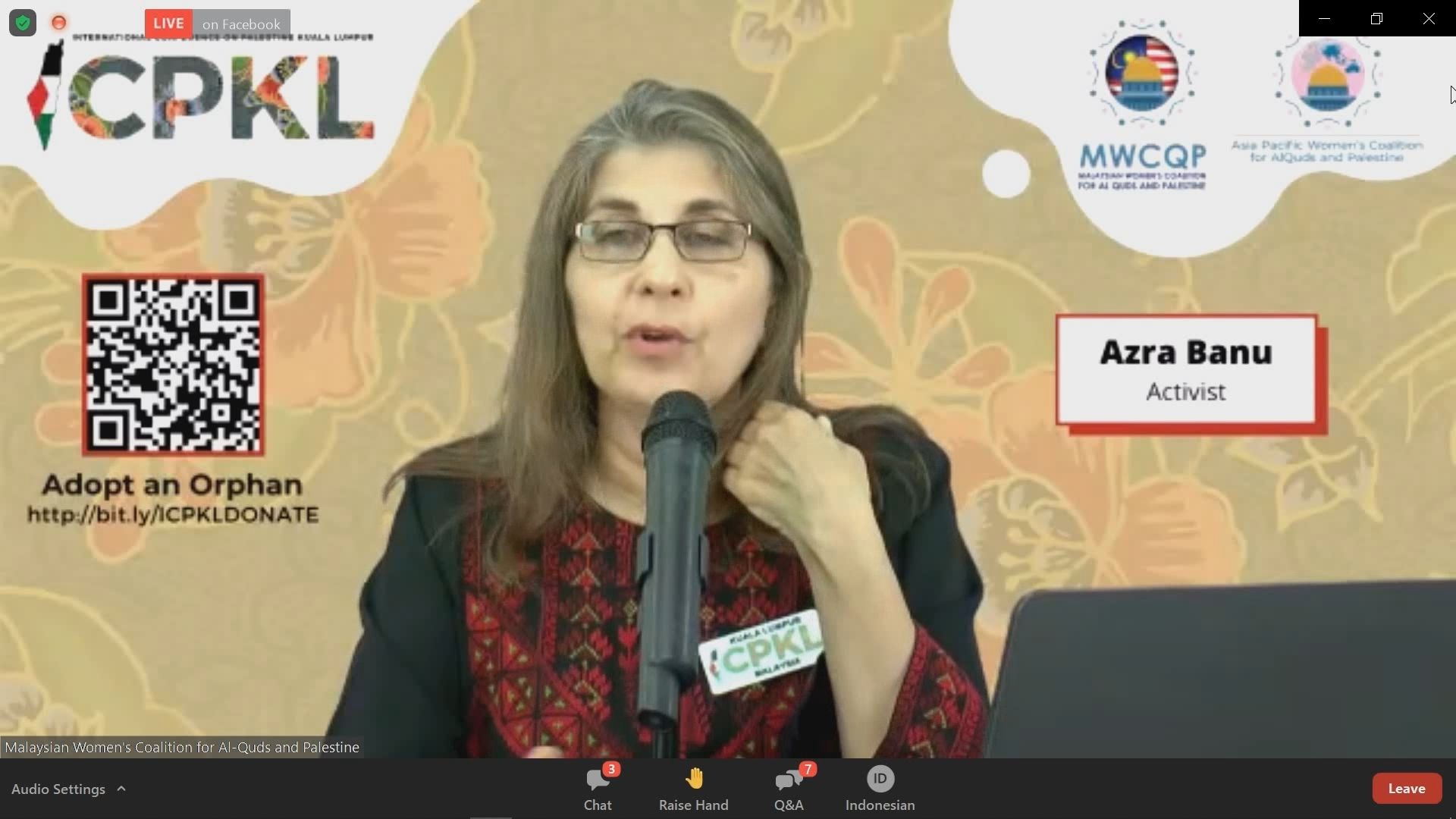 SIARAN PERS, JAKARTA – Edukasi mengenai sejarah dan kondisi terkini Palestina terus dilakukan. Hal ini merupakan bagian dari agenda penting para aktivis Palestina internasional. Melalui Konferensi Internasional Palestina di Kuala Lumpur (ICPKL) 2021 yang diselenggarakan oleh Koalisi Perempuan Asia Pasifik untuk Al-Quds dan Palestina (ApWCQP) pada Sabtu (27/3), Adara Relief International menunjukkan partisipasi aktif dalam hal ini.