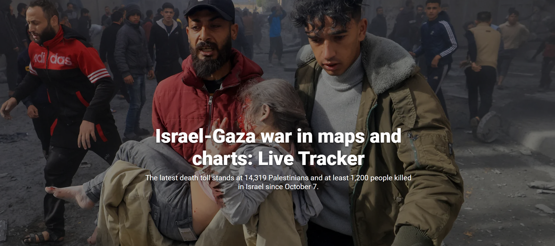 Israel telah mengebom Jalur Gaza selama 47 hari berturut-turut saat Palestina menghadapi bencana kemanusiaan yang semakin memburuk. Setelah runtuhnya layanan medis dan komunikasi di Kota Gaza pada 10 November, Kementerian Kesehatan di Gaza tidak dapat memberikan angka korban secara teratur. Namun, menurut kantor media pemerintah di Gaza, per 21 November, jumlah syuhada akibat serangan Israel setidaknya berjumlah 14.100 orang, termasuk 5.600 anak-anak dan 3.550 perempuan, sedangkan jumlah yang terluka mencapai 33.000 orang, dengan lebih dari 70 persennya adalah anak-anak dan perempuan. Sementara itu, sekitar 6.800 orang dilaporkan hilang.