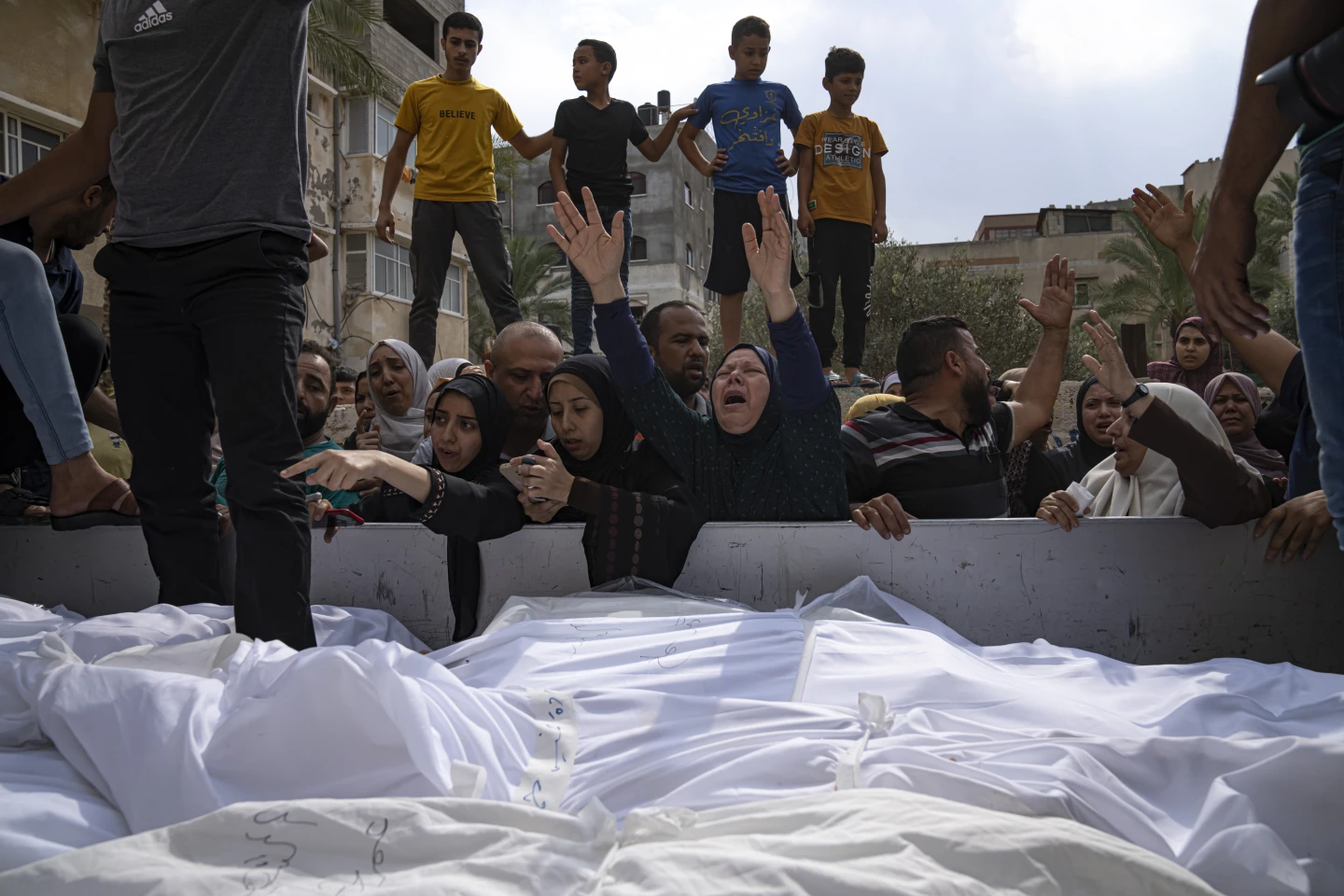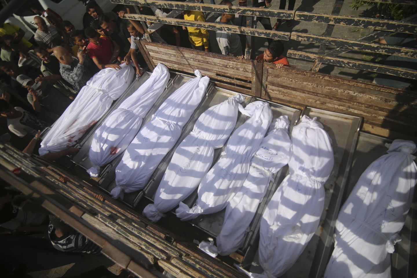 Kamar mayat di rumah sakit Shifa di Kota Gaza hanya mampu menampung sekitar 30 jenazah dalam satu waktu, dan para pekerja harus menumpuk tiga jenazah di luar ruang pendingin dan meletakkan puluhan jenazah lagi, secara berdampingan, di tempat parkir. Ada yang ditaruh di tenda, ada pula yang tergeletak di halaman rumah sakit, di bawah sinar matahari.