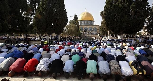 Warga Palestina melaksanakan Salat Jumat di halaman Masjid Al-Aqsa. Sumber: AP