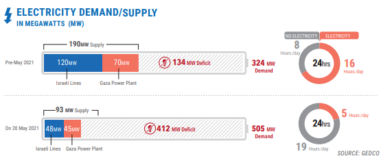 United Nations Office for the Coordination of Humanitarian Affairs in the Occupied Palestinian Territory (OCHA). (2021). “Crisis Power Defisit in Gaza”. https://www.ochaopt.org/sites/default/files/electricity_power_may_2021.pdf.