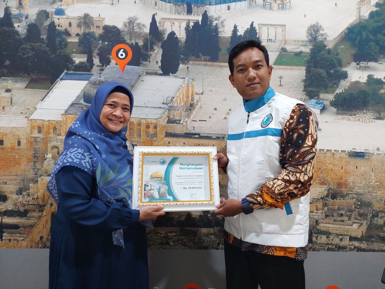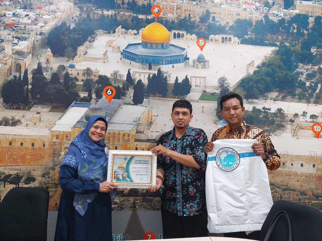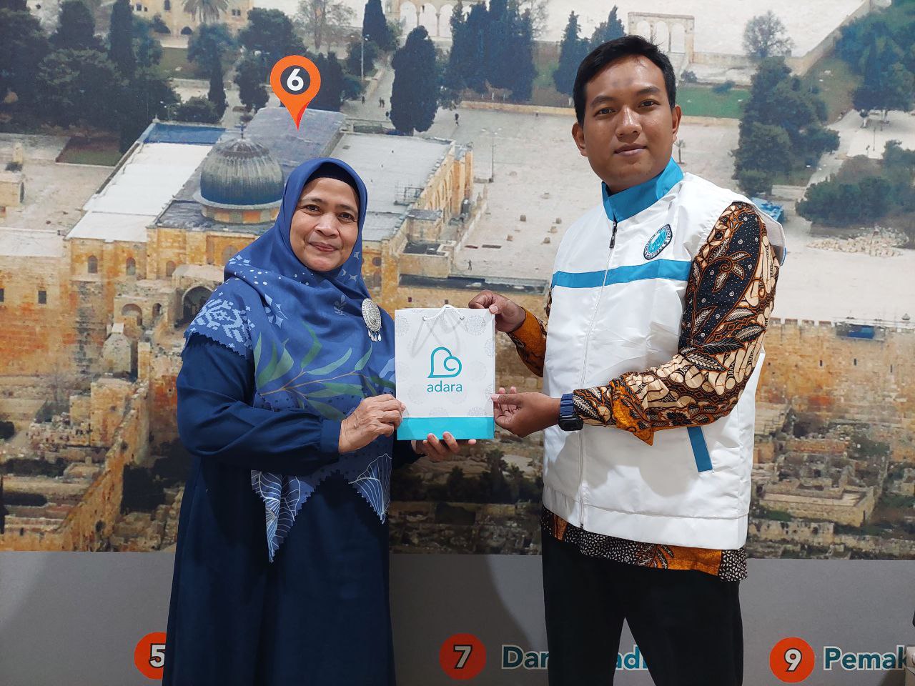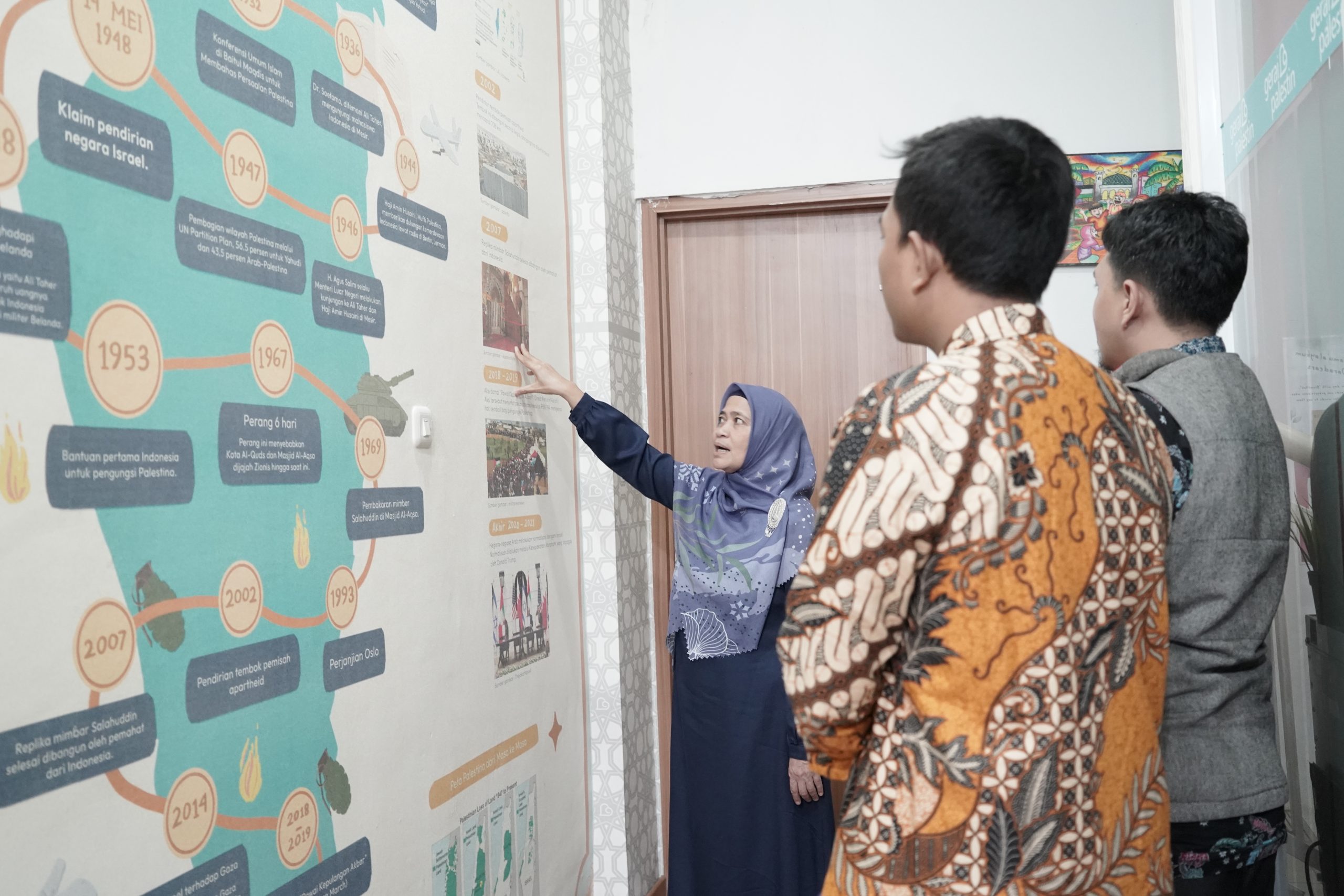 Direktur Eksekutif Adara Relief International Ibu Sri Vira Chandra, juga mengajak dan menjelaskan secara singkat area distribusi penyaluran donasi di Palestina dan Indonesia, serta sejarah singkat timeline peristiwa penyerangan Palestina oleh zionis yang Adara Relief International gambarkan dalam bentuk Wallpaper di salah satu dinding kantor Adara Relief International.
