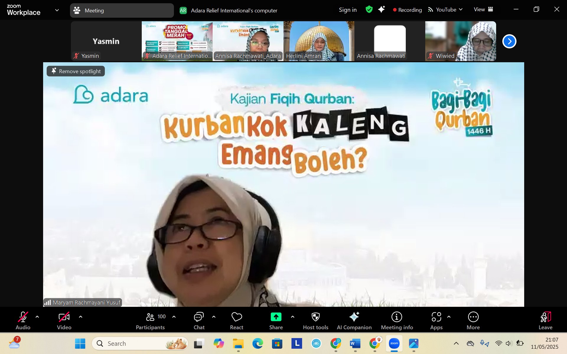 Webinar Fiqh Qurban bertajuk "Kurban Kok Kaleng, Emang Boleh" yang diisi oleh Ustadzah Herlini Amran, M.A. di Zoom Meeting (11/05).