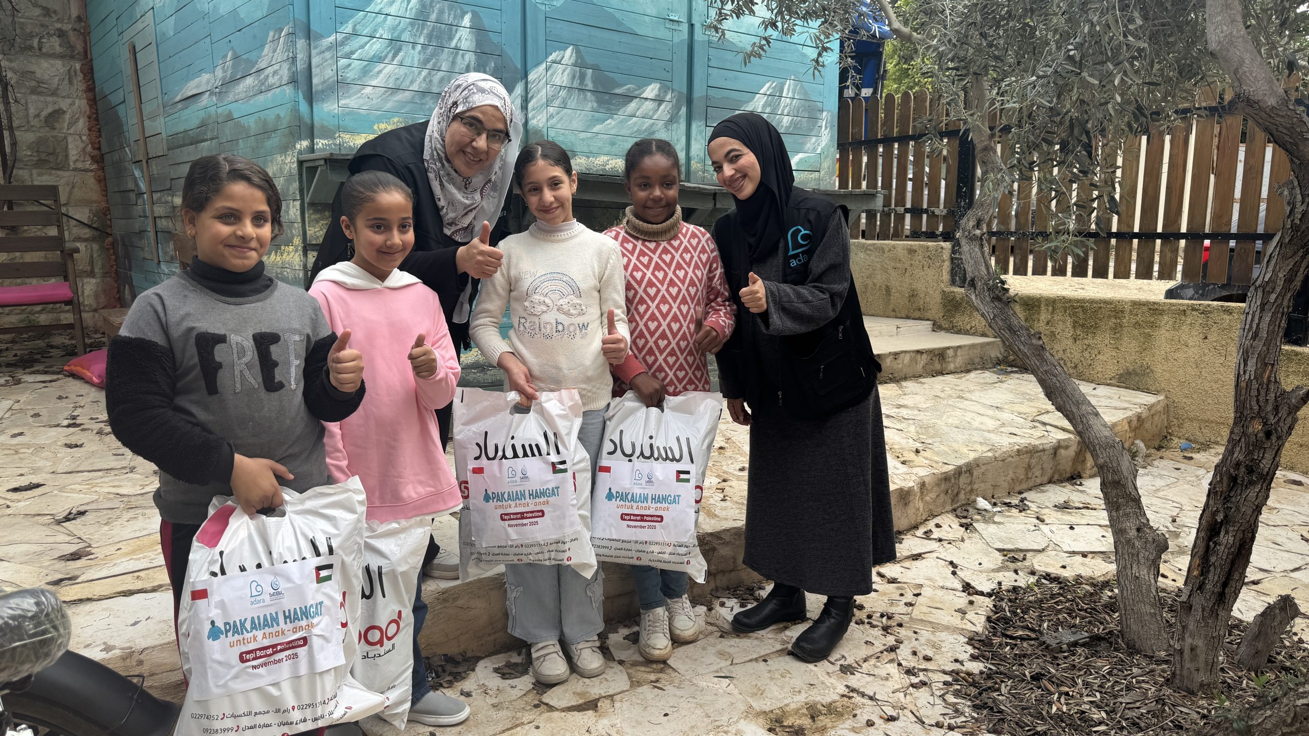 Musim dingin tahun ini telah menjadi waktu-waktu yang kritis bagi penduduk Palestina di Tepi Barat, namun bantuan dari Sahabat Adara telah membantu mereka melewatinya. Terima kasih Sahabat Adara, bantuan pakaian hangat darimu sangat berarti bagi saudara-saudara kita yang membutuhkan bantuan di Tepi Barat. Kini banyak keluarga tidak lagi menggigil kedinginan, sebab pakaian hangat darimu telah menjadi uluran tangan yang merangkul mereka dari kejauhan.