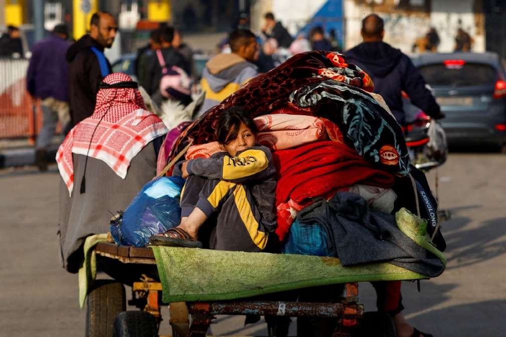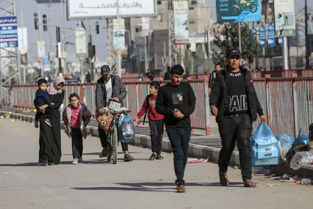 Agresi Israel di Gaza kembali memaksa ribuan warga Palestina mengungsi setelah Avichay Adraee, juru bicara militer Israel, pada Jumat (22/12) melalui platform media sosialnya, mendesak penduduk kamp Bureij dan wilayah tengah Gaza lainnya untuk segera mengosongkan rumah mereka dan pindah ke selatan kota, Deir el-Balah. (Abdelhakim Abu Riash/ Al Jazeera)