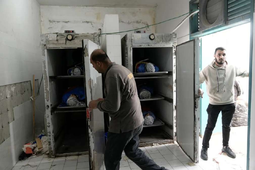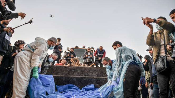 Petugas di Gaza menguburkan 80 warga Palestina di kuburan massal di Pemakaman Tel al Sultan, Rafah setelah Israel mengembalikan jenazah tak dikenal – beberapa utuh, yang lain dimutilasi. Kementerian Kesehatan di Gaza menerima jenazah tersebut pada Selasa (26/12) melalui perbatasan Karem Abu Salem yang dikontrol Israel di Gaza selatan. (TRT World)
