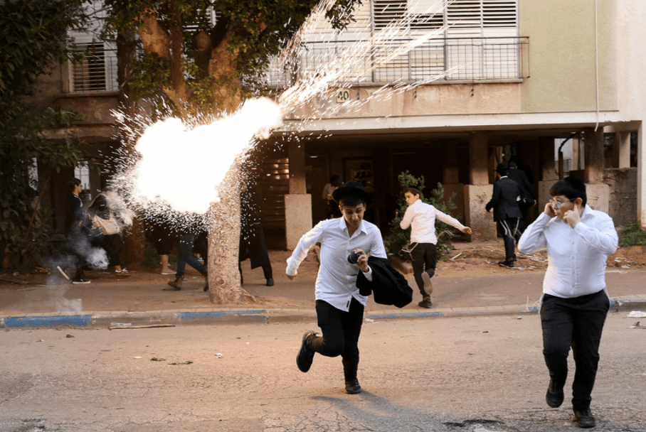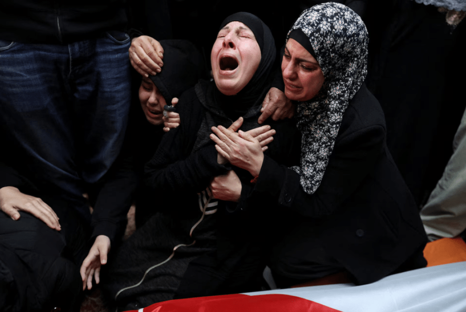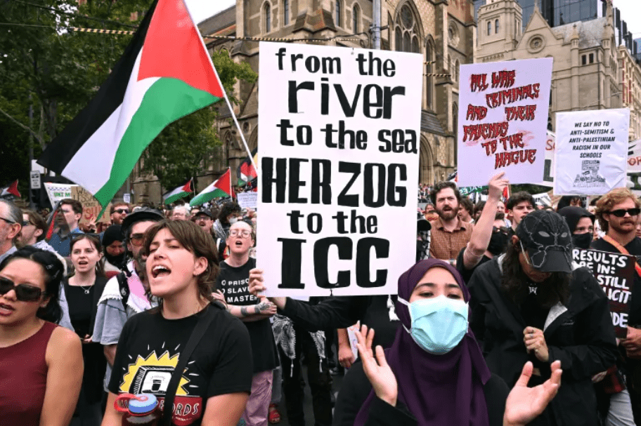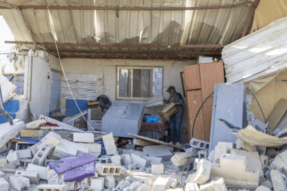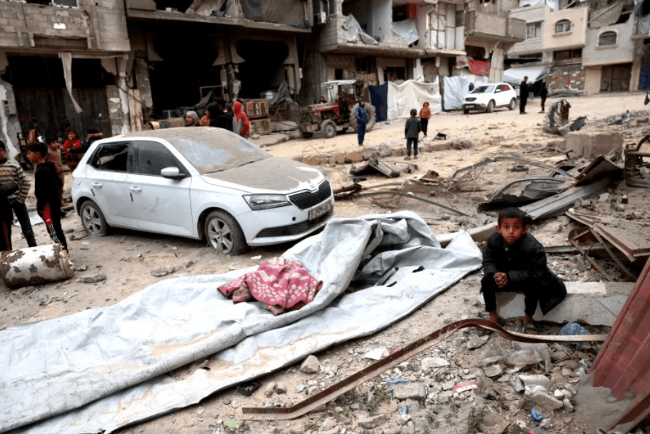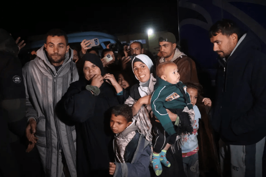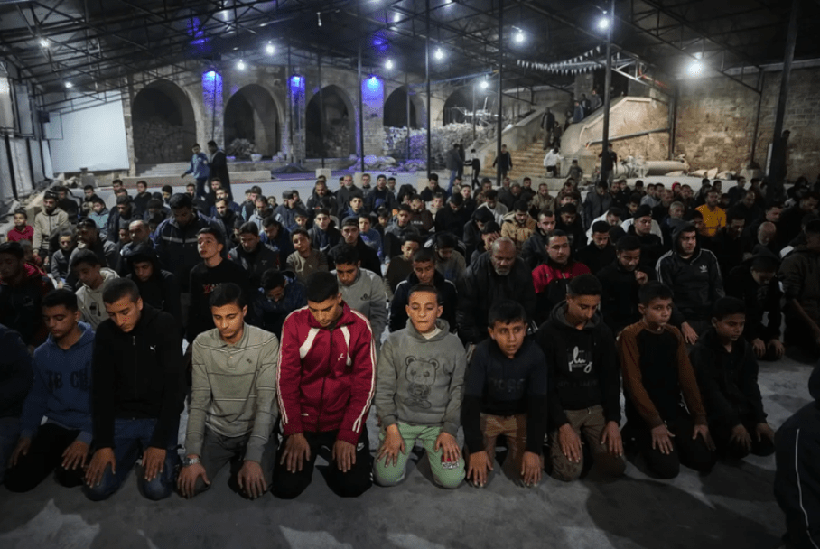 Sebuah rudal yang diluncurkan dari Iran terlihat di langit dari kamp pengungsi Bureij di Jalur Gaza tengah pada 1 Maret...