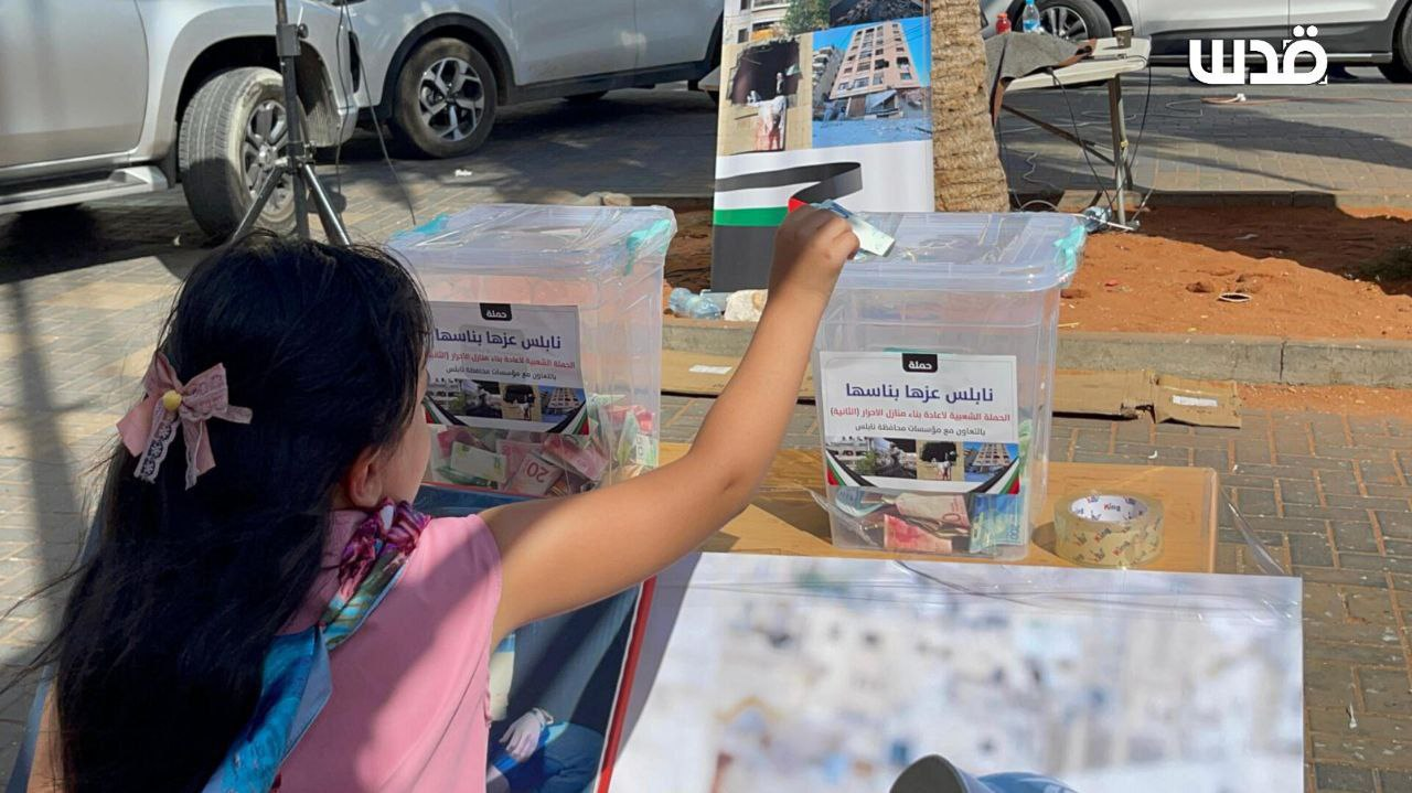 Orang-orang Palestina mengumpulkan dana di pusat kota Nablus (29/7) untuk membangun kembali rumah keluarga pejuang Palestina yang dihancurkan oleh rezim pendudukan Israel sebagai bentuk hukuman kolektif. (QNN)
