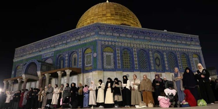 Lebih dari 1,8 miliar Muslim di seluruh dunia mulai menjalankan ibadah Ramadan pada Sabtu (1/3), termasuk Gaza yang dilanda agresi dan Tepi Barat yang diduduki. Memasuki Ramadan, warga Palestina melaksanakan salat tarawih pertama di kompleks Masjid Al-Aqsa di Al-Quds. (Ahmad Gharabli/ AFP/ Al Jazeera)