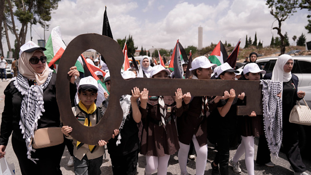 Dalam salah satu acara, sejumlah anak laki-laki yang mengenakan syal khas Palestina (kufiyah) tampak melambaikan bendera dan membawa replika kunci berukuran raksasa — simbol rumah-rumah mereka yang telah hilang di wilayah yang kini menjadi bagian dari Israel, dan keyakinan bahwa suatu hari mereka atau keturunan mereka dapat kembali ke sana. Di Gaza sendiri tidak ada acara yang diselenggarakan. Lebih dari 19 bulan agresi dan pengeboman Israel telah membuat warga hidup dalam kehancuran dan keputusasaan.