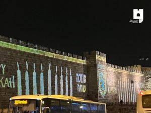 Parah! Tembok Masjid Al Aqsa Disoroti Lampu-Lampu Hanukkah – 6 Desember 2021, dinding-dinding Masjid Al Aqsa dihinakan dengan sorotan lampu warna-warni perayaan Hanukkah, hari besar bangsa Zionis.