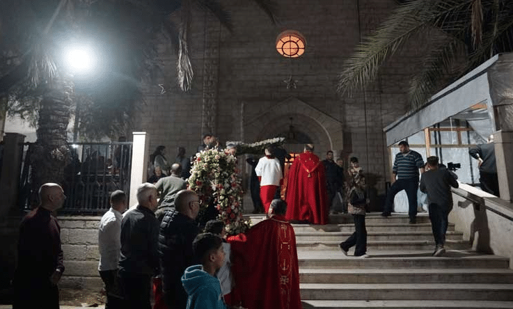 Di Gaza, umat Kristen tetap menjalankan ibadah di tengah krisis kemanusiaan yang parah. Agresi genosida yang terjadi selama dua tahun terakhir telah membunuh puluhan ribu orang serta menghancurkan rumah dan infrastruktur sipil. Sejumlah gereja yang menjadi tempat perlindungan warga turut terdampak serangan, termasuk Holy Family Church yang tetap menggelar misa meski situasi tidak menentu.