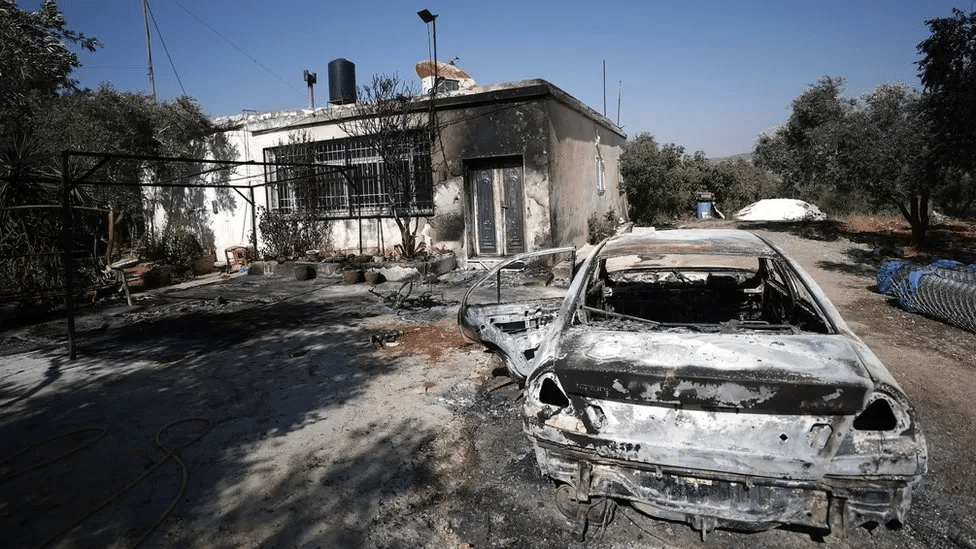 “Kami bersembunyi ke lantai tiga. Dari sana, kami memantau para pemukim melalui kamera. Mereka membakar empat mobil kami, satu demi satu. Kemudian sekelompok pemuda Palestina datang untuk menolong kami melalui pintu masuk lain. Para pemukim mencoba mencari kami dari arah yang berbeda, tapi syukurlah, para pemuda Palestina segera tiba dan membawa kami keluar. Kami melompati pagar tinggi menggunakan kursi kemudian berjalan sekitar 15 menit di jalan tanah yang datar, di bawah pepohonan dan duri, sampai kami mencapai daerah yang aman.”