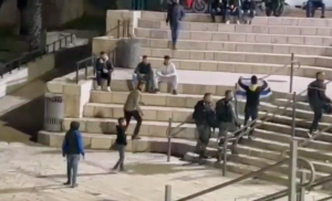 Seorang pemukim memprovokasi di Bab al-Amud dengan mengibarkan bendera Israel di malam berikutnya
