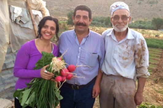 Vivien Sansour bersama Khader dan Abu Diaa, petani yang berpartisipasi dalam upaya Palestine Heirloom Library.