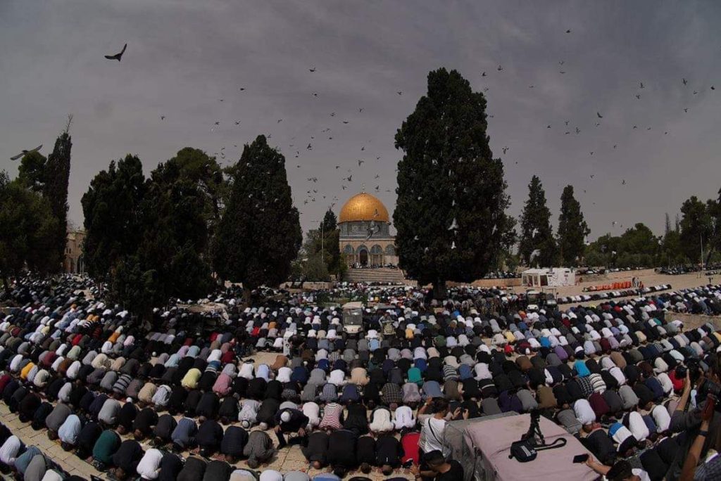Hampir 80.000 jemaah melaksanakan salat di Masjid Al-Aqsa pada Jumat pertama Ramadan. Wakaf Islam Al-Quds mengatakan meskipun ada pembatasan Israel, sekitar 80.000 jemaah berhasil mengunjungi masjid Al-Aqsa dan melakukan salat Jumat. Setelah itu, jamaah berkumpul di halaman masjid dan meneriakkan slogan-slogan yang berjanji untuk melindungi masjid dari pelanggaran Israel.