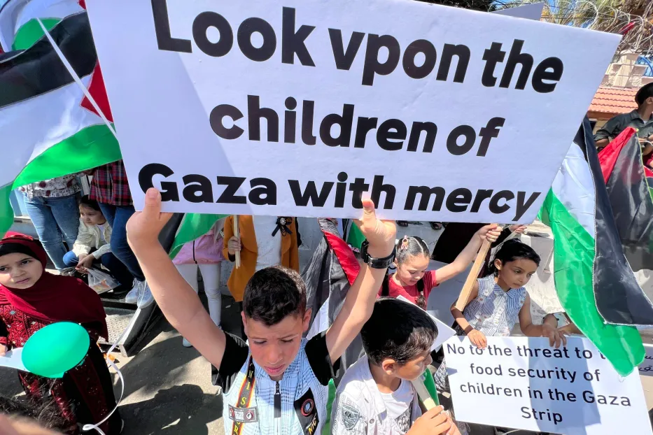 https://www.#/20230606-children-in-gaza-protest-against-reduced-funding-for-food-aid/