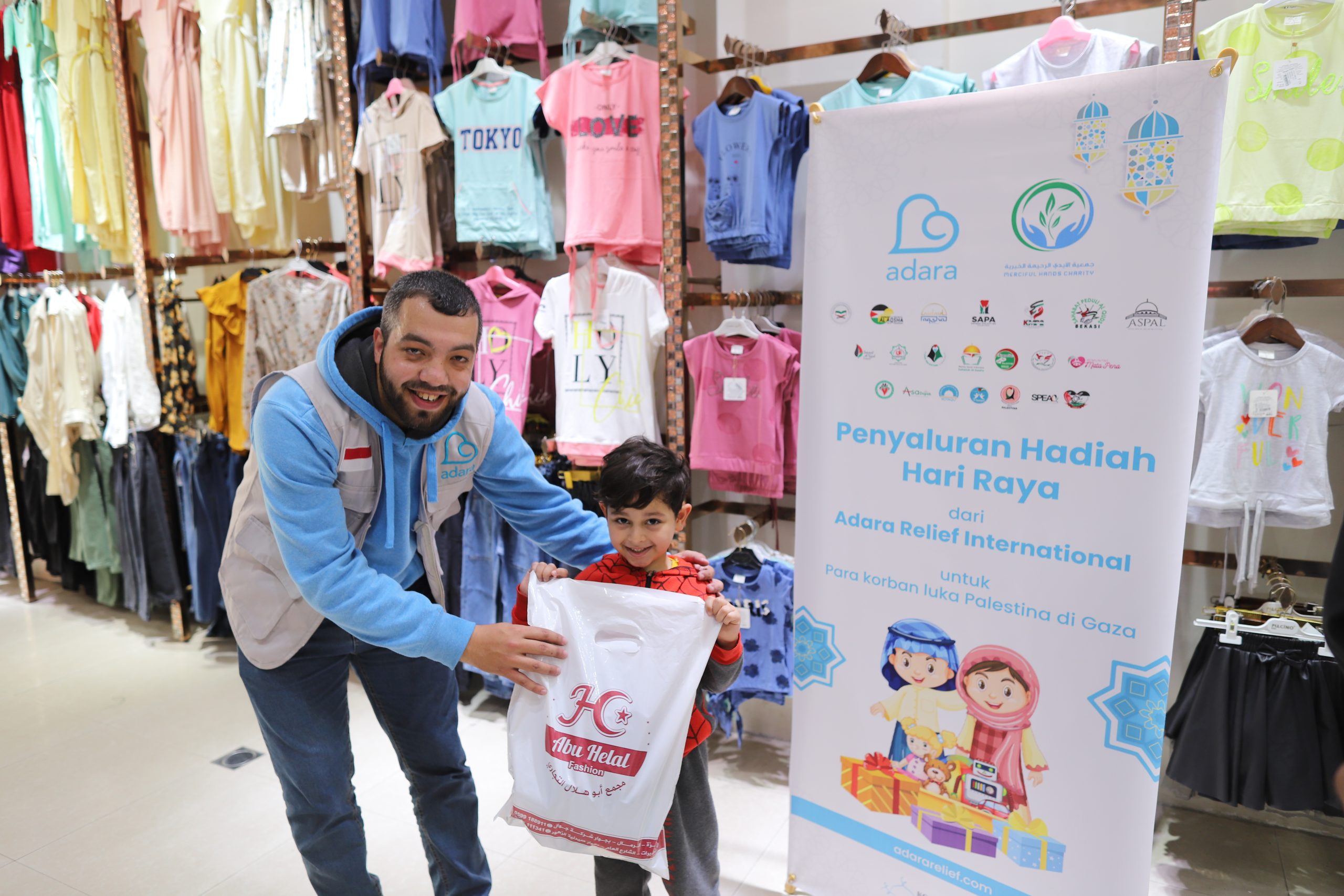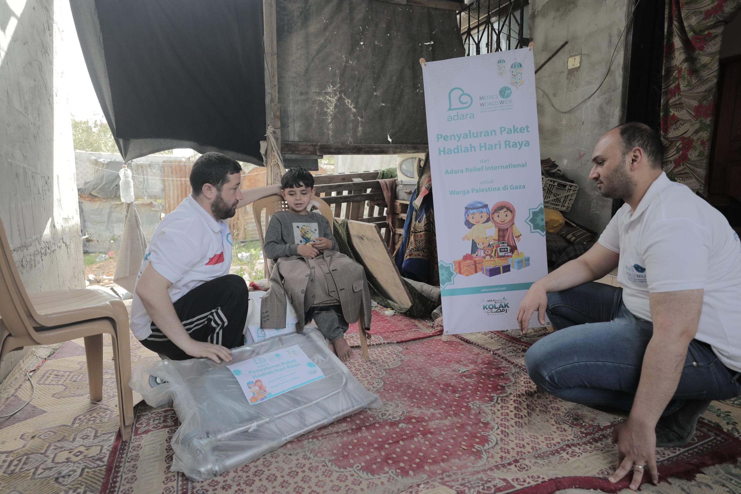 Hadiah Hari Raya ini adalah wujud kepedulian Sahabat Adara untuk anak-anak Palestina, agar mereka tetap tersenyum bahagia di hari raya. Hadiah yang diberikan berupa pakaian, jaket, dan mainan.